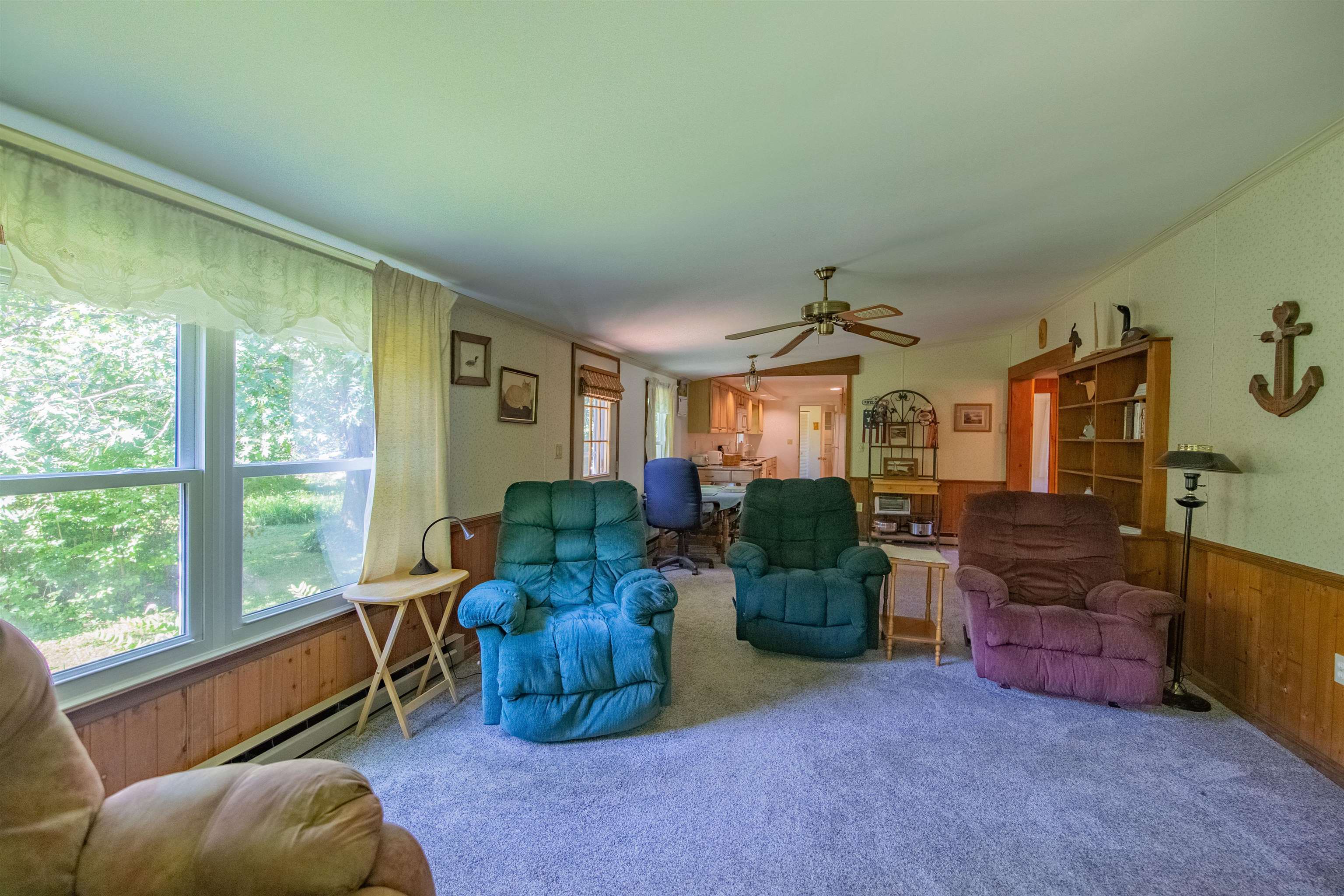 A fairway-style back lawn leads north from this charming home to 55 feet of frontage on the Bearcamp River! The stand-by generator, brand-new drilled well, and standing seam roof truly set this property apart from the rest. Welcome to the most private lot on Mays Way, located at the very end of a quiet cul-de-sac with trees and bushes separating the home from the town-maintained road. This parcel sits up against nearly 22 acres of land under conservation easement. Across the river is more protected land owned by Remick Farm in Tamworth Village. The large attached garage with three vehicle stalls is a huge asset to this property with plenty of storage space above and a closed-in room between there and the home. Enjoy a mountain view of Nickerson from the relaxing front deck and more from the backyard. Cell coverage is excellent here, as well as a few options for blazing-fast home internet including fiber-optic. An impressive wood boiler helps off-set heating costs, working in conjunction with the propane furnace inside. The gleaming kitchen has seen recent upgrades, there is newer carpet in the living room, and a light-filled sun porch provides quick access to the lawn. The convenient location, comfortably close to routes 16 and 25 yet not too far away, makes for a quick trip to Conway, Ossipee or Meredith. Tamworth's community has a strong presence and there is a FREE town nurse's association for all citizens to utilize. Come see what a hidden gem this town truly is. Welcome!