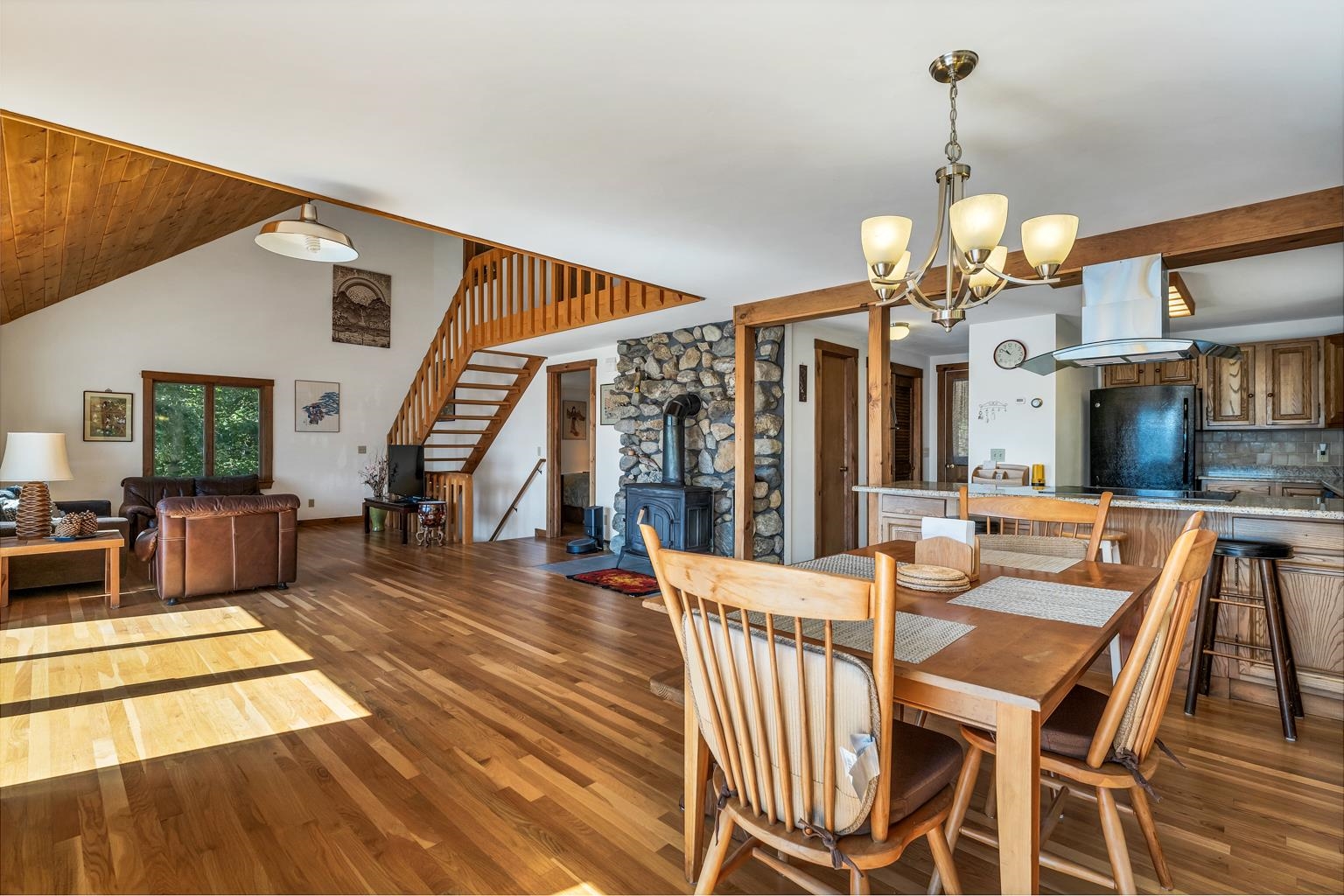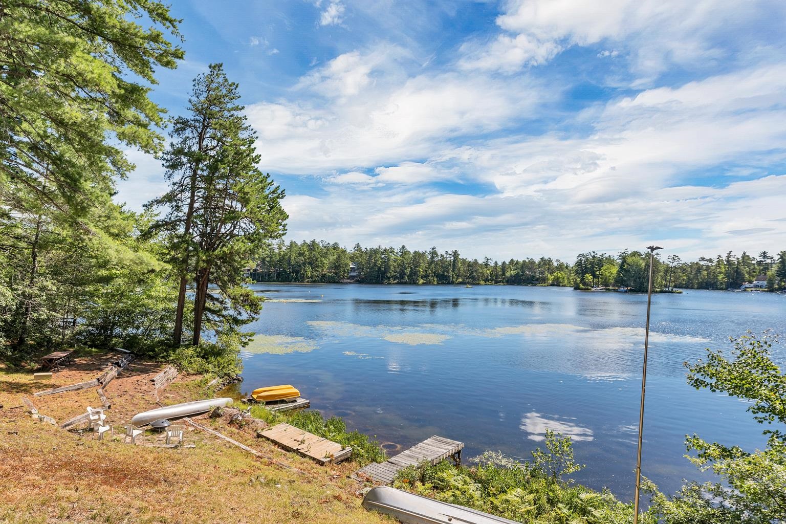 This Balch Lake waterfront home offers 200 feet of shoreline on nearly an acre of land, creating a retreat where every season can be enjoyed. Built in 1980 and thoughtfully updated, the home features 1,608 square feet of living space with lake views as the backdrop. The kitchen has been beautifully renovated and includes bar seating that opens directly to the dining area, where sliding glass doors lead out to a spacious deck overlooking the water. The main level also includes a large living room with vaulted ceilings, a striking stone hearth with wood stove, a bedroom, and a full bath with shower. Upstairs, you'll find two more bedrooms, a second full bathroom, and an office area-ideal for working remotely while taking in glimpses of the lake. The lower-level walkout basement provides additional space with direct access to a patio at the water's edge. Outside, the private dock makes it easy to spend days swimming, boating, or simply soaking in the peace of the lakefront setting. With its generous shoreline, natural beauty, and inviting layout, this property is ready to be enjoyed as a year-round home or a getaway to share with family and friends.