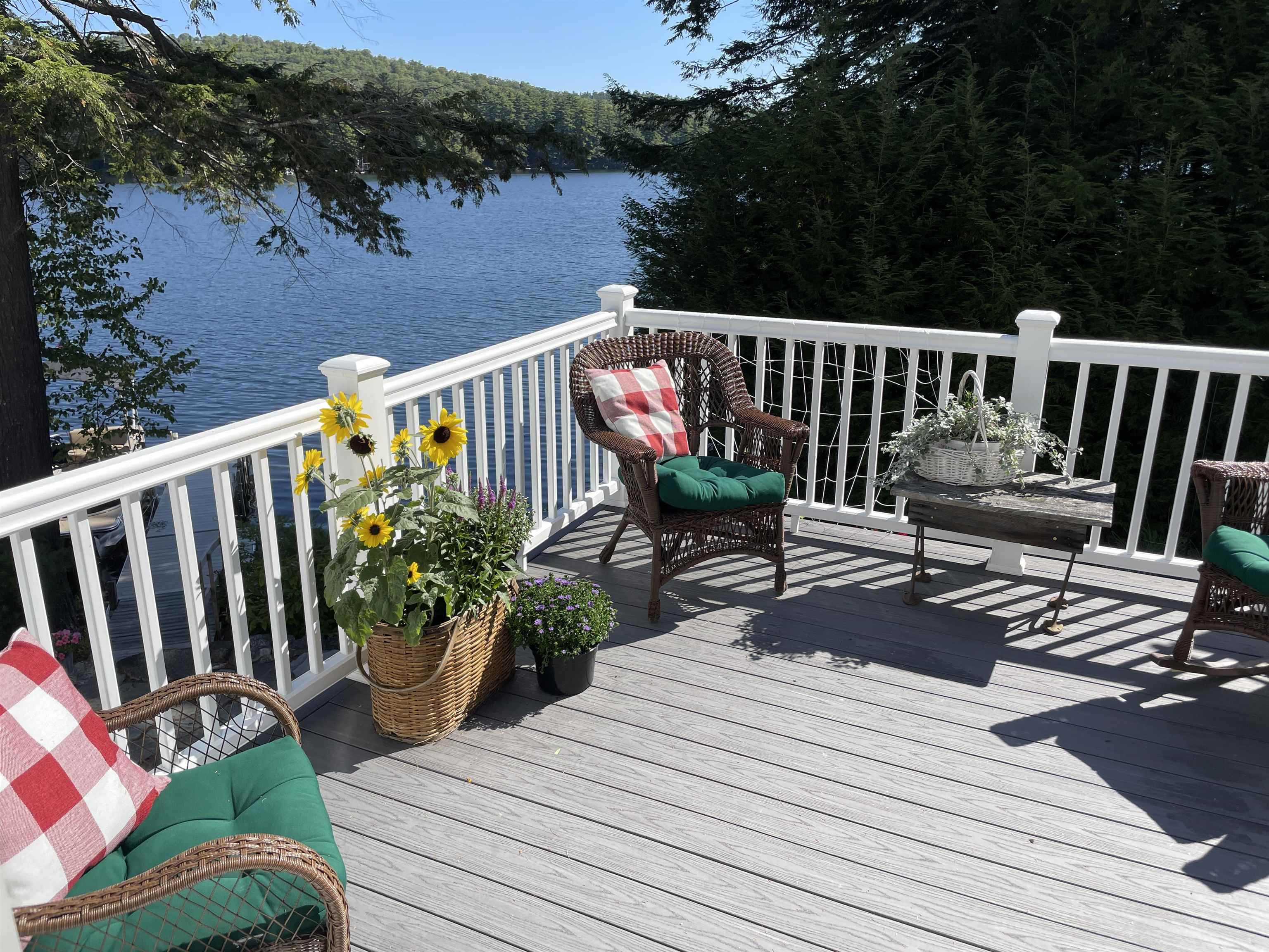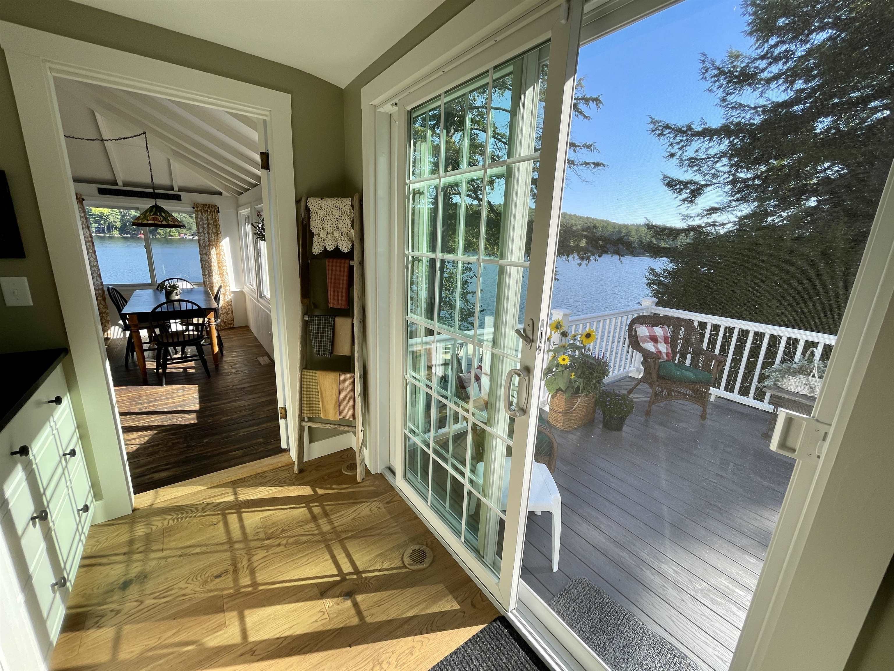 Welcome to this beautifully renovated, waterfront home on Lovell Lake! Enter via the private teardrop driveway surrounded by towering hemlocks, perennial gardens and tiered stone walls, all leading to the front entrance. The owners have thoughtfully remodeled this property over the past 15 years, with new oak flooring throughout the open concept layout, including a new custom kitchen with access to the sunny deck overlooking the water's edge. The kitchen opens to the large living room with its original brick fireplace, offering warmth and ambiance during those cooler months. Enter into the incredible wrap-around-porch -- this wonderful space will take your breath away with its amazing water views, incredible sunrises and sunsets, all with the ability to enjoy dining on "�windows on the water"�. Two bedrooms and a full bath round off this main floor. A full foundation was added in 2016, doubling the living space, which includes a sizeable family room centered around a stunning fieldstone fireplace, large paned windows and radiant heat tile flooring. This floor includes a primary bedroom, full bath, laundry room, and a bonus room. Walk out the 8' slider to the large bluestone patio leading to the dock. This home is perfectly situated on 190' feet of private waterfront, where you will view the resident loons and eagles that grace Lovell Lake. A heated 2-car garage, irrigated lawns and a storage shed add to the desirability of this property. Owners are licensed NH REALTORS ®.