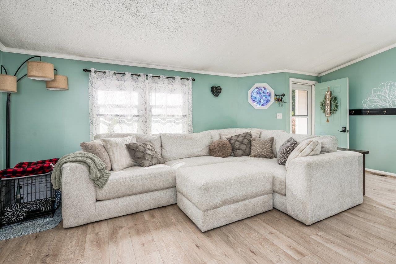 Open House on Saturday, September 27th, from 2:00pm - 3:30pm. This spacious double-wide offers 3 bedrooms and 2 full bathrooms, designed with comfort and functionality in mind. The open floor plan features a bright living room that flows into a large kitchen with a generous center island, perfect for meal prep or casual gatherings. Just off the kitchen is a dining area with plenty of room for a table, and there's also a dedicated laundry area for added convenience. The primary bedroom includes its own private bath, while the two additional bedrooms share a full hall bathroom. Step outside onto the back deck, where you can relax and enjoy the outdoors in a quiet setting. Royal Crest Park is a co-op with low monthly fees, giving you the benefits of affordable living in a well-maintained community. With easy access to shopping, restaurants, and commuter routes, this home is ready for its next owners to move right in.