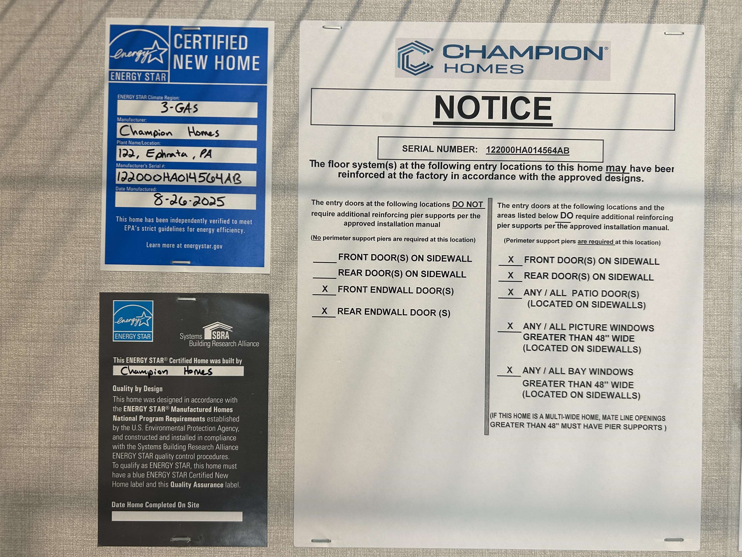 **GORGEOUS BRAND NEW DOUBLEWIDE IN A COOP**This manufactured home is in a small resident owned community that is a family community and pet friendly. The home has a large open concept interior with a center island kitchen! The Primary bedroom has a walk in closet and its own private bathroom with walk in shower! There are 2 more rooms on the other side of the home with a full bath. The kitchen is loaded with cabinets and counter space and off the kitchen is a large laundry area/ mudroom with a bench and hooks for coats!! The yard is large and level with a good sized shed for storage. This home is so nice and has a low monthly fee that includes water, sewer and trash removal. This Champion Model Home is an Energy Star Home as well.
