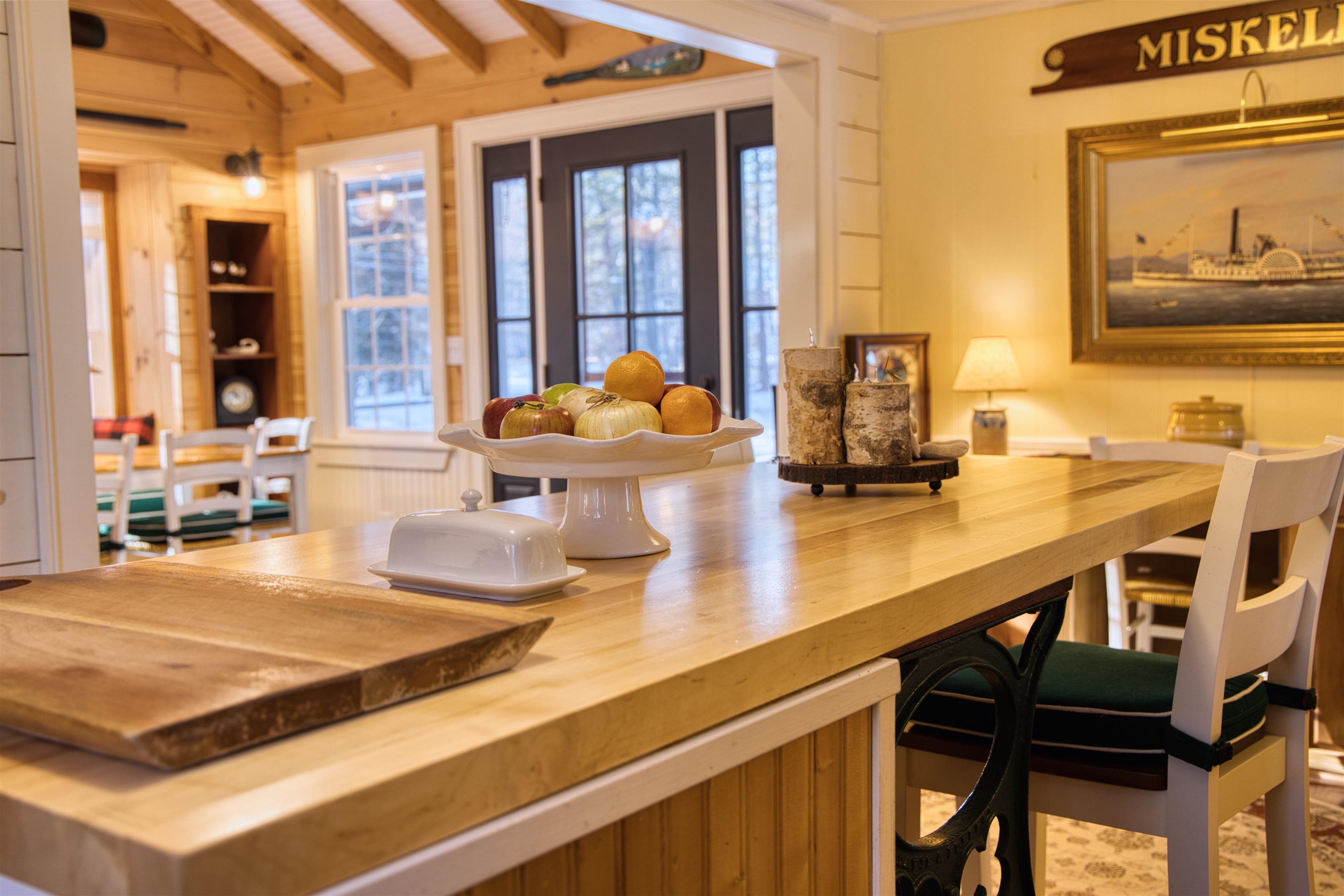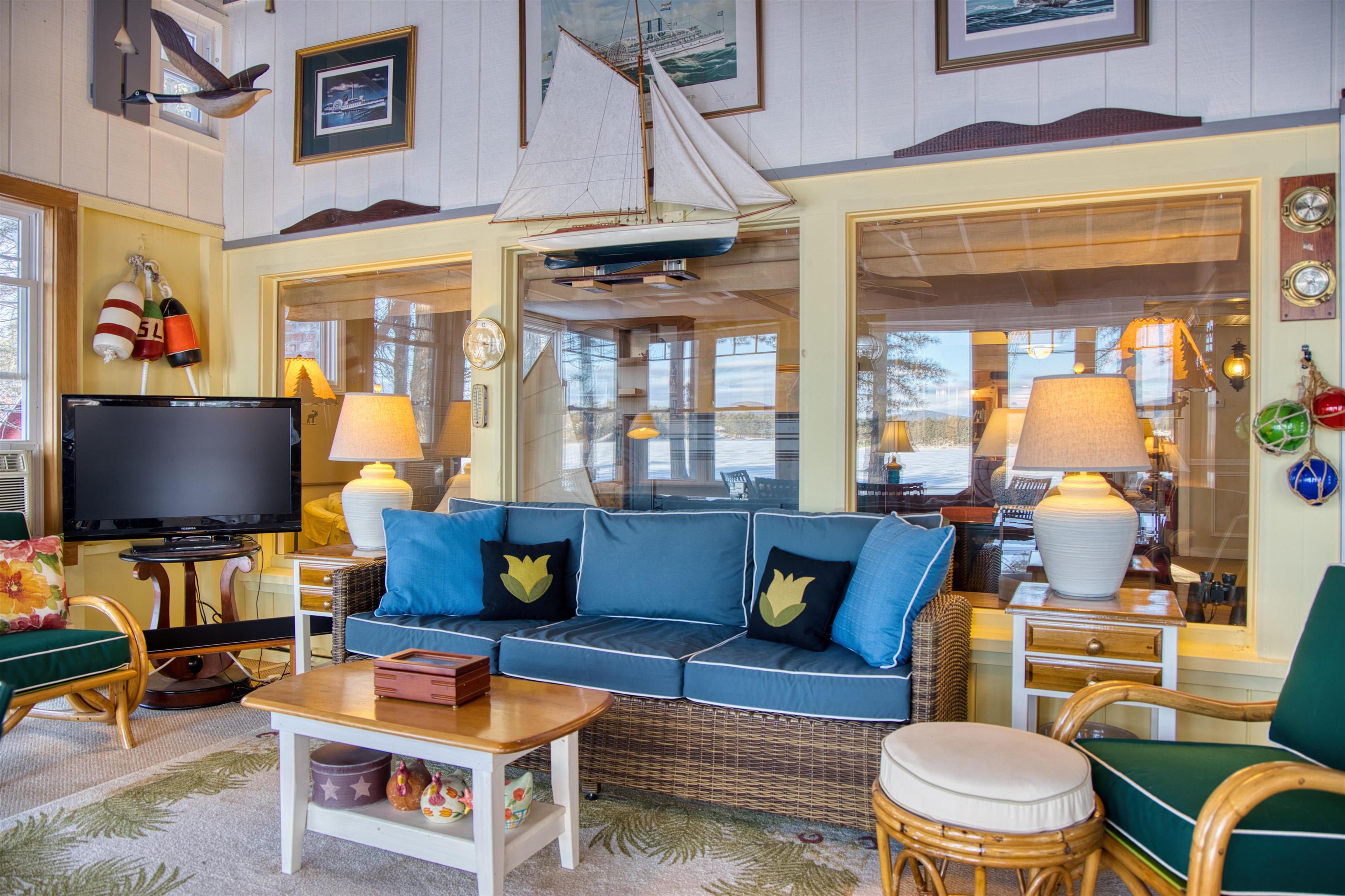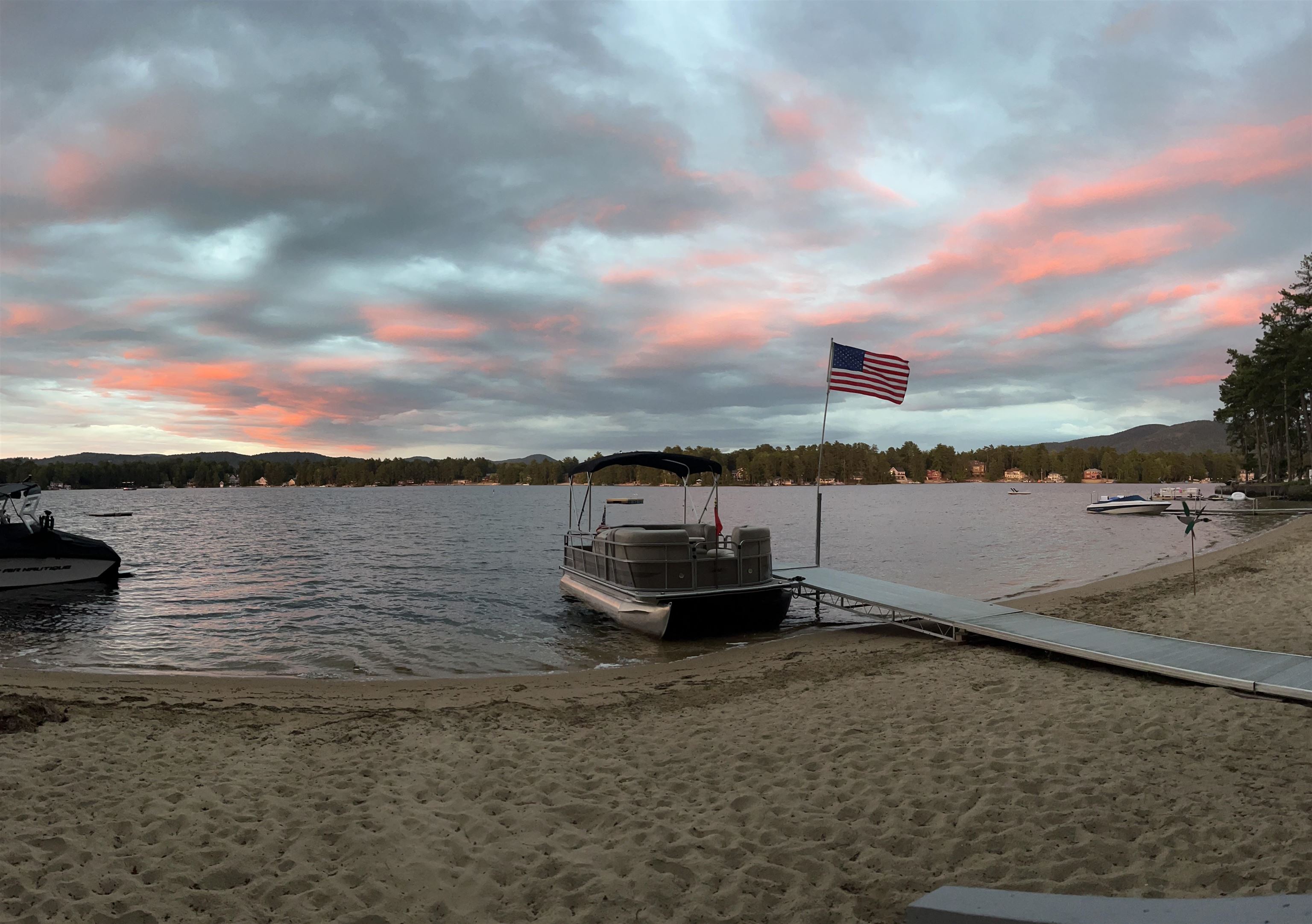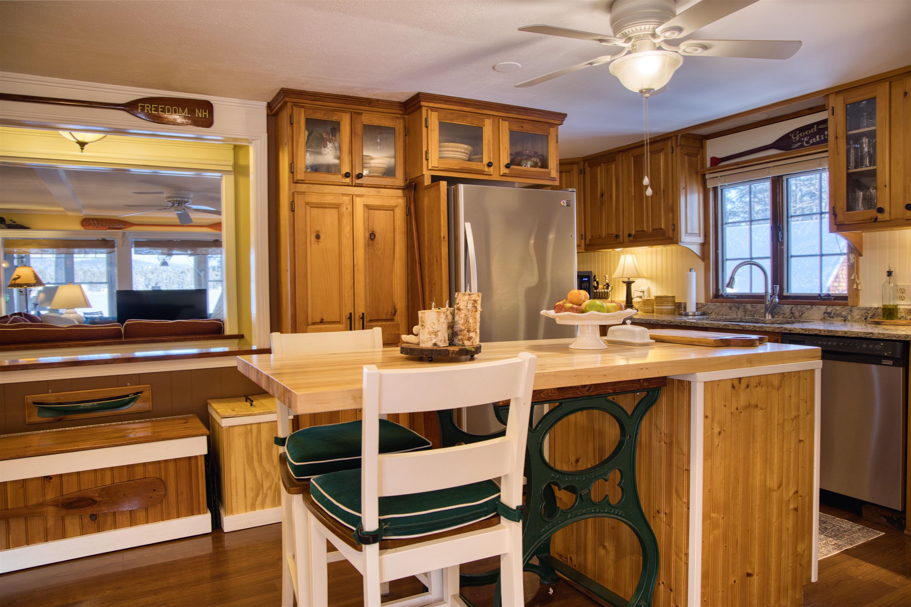 Set along the shores of Broad Bay on Ossipee Lake, this well cared for 1962 ranch offers classic lakefront living with thoughtful updates throughout. The home sits gently elevated above the water with an easy walk down to a flat, sandy shoreline and level lake access, ideal for swimming, boating, and relaxing by the water. The main living level features a bright, open layout with large windows that capture beautiful lake, mountain, and sunrise views. The kitchen has been updated with quartz countertops and opens to a comfortable dining or sitting area that was fully renovated in 2021 and is now a four season space with a mini split for heat and air conditioning. The living room includes a gas fireplace and flows into a sun filled three season porch overlooking the lake, offering the potential to create additional finished living space. The primary bedroom enjoys sweeping water views, while a guest bedroom and full bath complete the main level. The lower level offers heated bonus space with walkout access on one side, along with laundry and utility areas, and a garage door providing convenient covered storage, offering versatility for storage, recreation, or additional gathering space. Outside, the property is thoughtfully maintained with a lakeside patio, level shoreline, and a charming detached bunkhouse ideal for summer guests. Set within the Ossipee Lake system, the setting delivers a peaceful, classic lakefront experience that feels both comfortable and enduring. Open House sunday 1/18 12 to 2pm