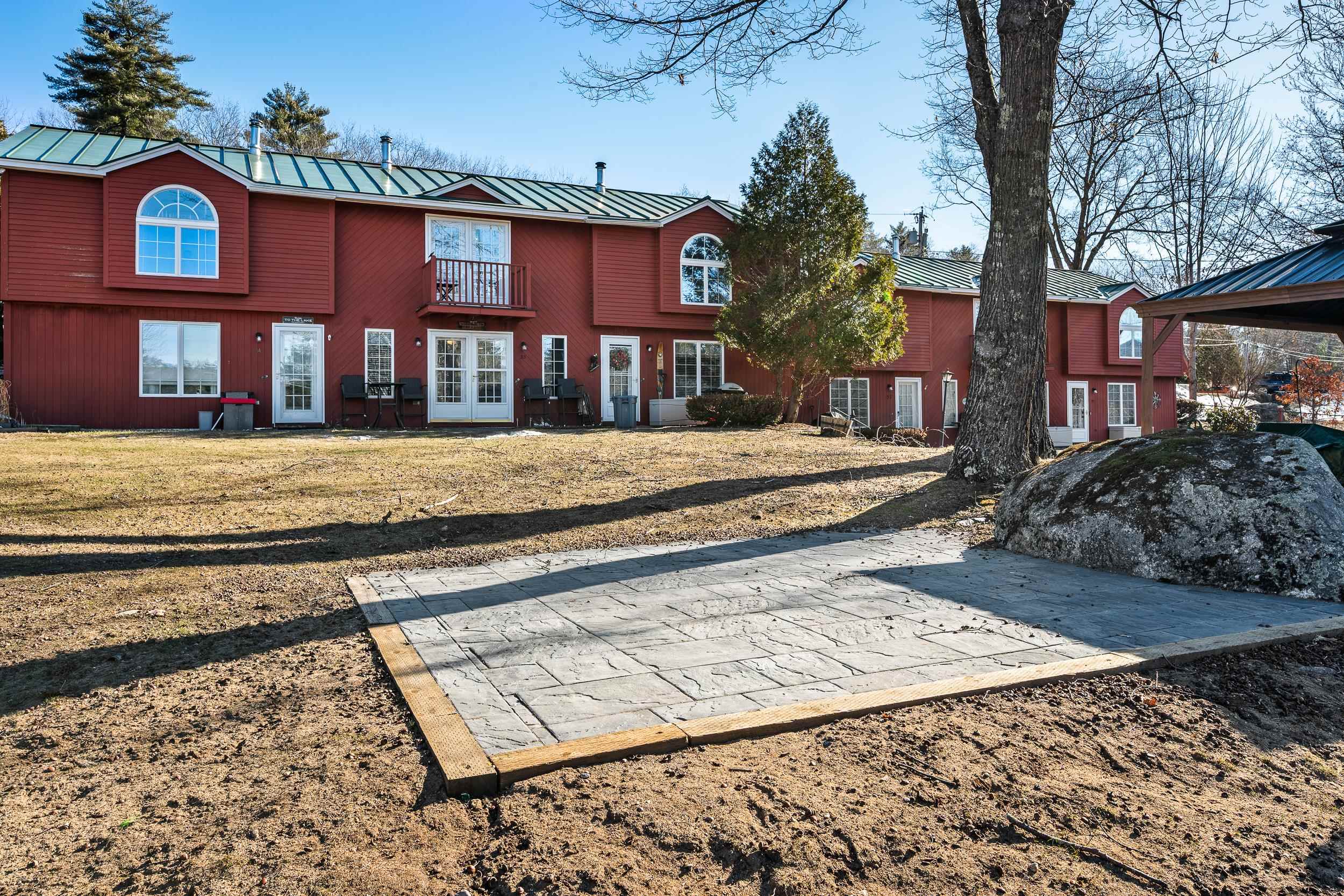 OSSIPEE LAKE - BERRY BAY WATERFRONT CONDO IN LOW TAX FREEDOM! No obstructed views from unit and private patio! Enjoy this affordable, cozy, very well cared for, 4-season condominium community with direct access to the lake which is extremely rare at this price point! Experience amazing sunsets from your own private gazebo area and lovely landscaped grounds. Sold furnished and updated to include 3-mini-splits for heating & cooling. 2-level, open concept living room, dining and kitchen area with counter bar, laundry/utility room, pantry closet and 1/2 bath. Upstairs has full bathroom, large primary bedroom with double doors that open to a private balcony and view of the lake. Second bedroom w/bunks have double sliders which open to a back deck and second exit/entrance that leads to parking lot. Enjoy one of the best placed units in complex with nothing blocking views or access to lake. Shared sandy beach and lake frontage, day dock, boat mooring (often available after ownership) with a basketball & pickleball court and kayak racks. Also close to King Pine ski area, snowmobile and hiking trails and North Conway Village. Don't miss your chance to be part of this amazing lake community!