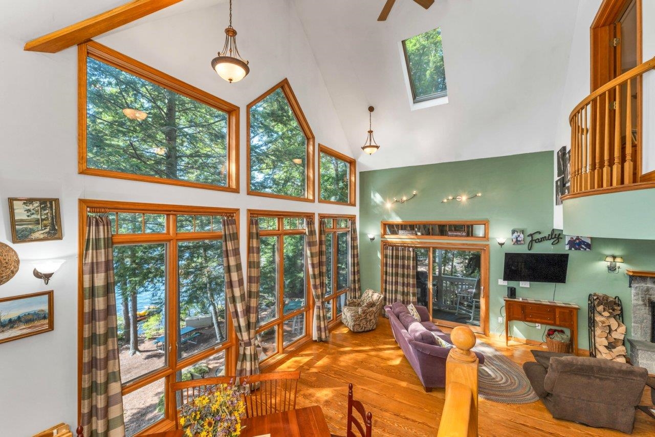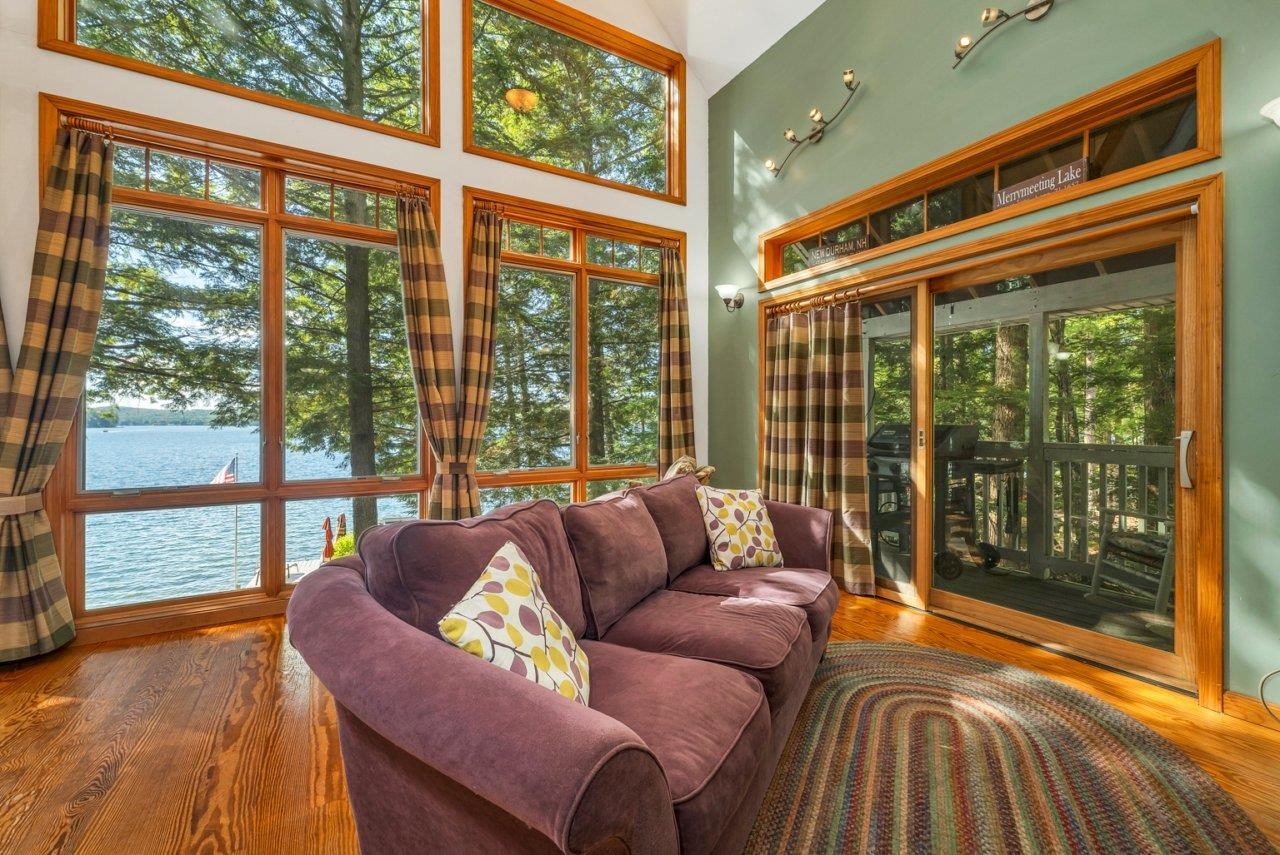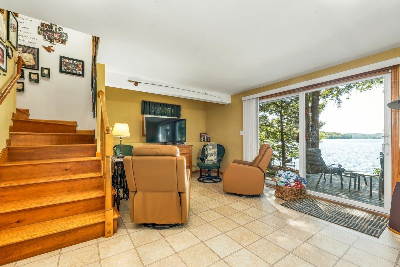 Stunning Lakefront home on Merrymeeting Lake!! Enjoy breathtaking sunset views from this beautiful property situated on a level lot with mature and elegant hardscaping. This home features a spacious deck perfect for entertaining or relaxing by the water. Inside, you'll find large windows that flood the space with natural light and views of the lake from every window: hardwood floors, and an open-concept living area designed for comfort and style. Stay warm by the fireplace on cool nights. The finished walkout basement offers additional living space, perfect for guests, recreation, or a home office. A rare opportunity to own a slice of paradise on one of the region's most desirable lakes.