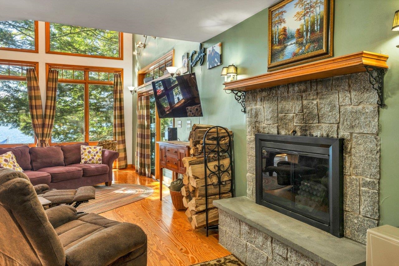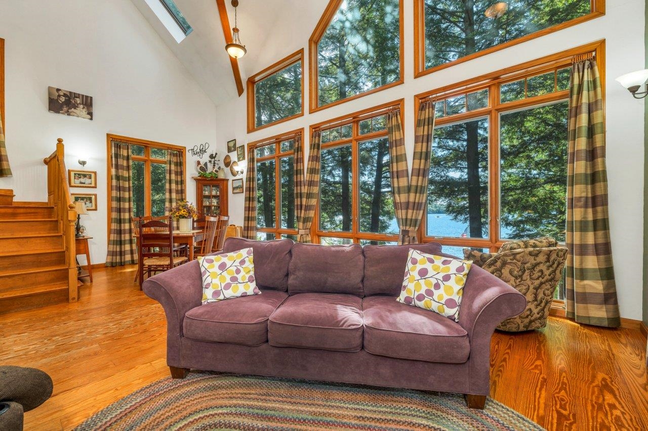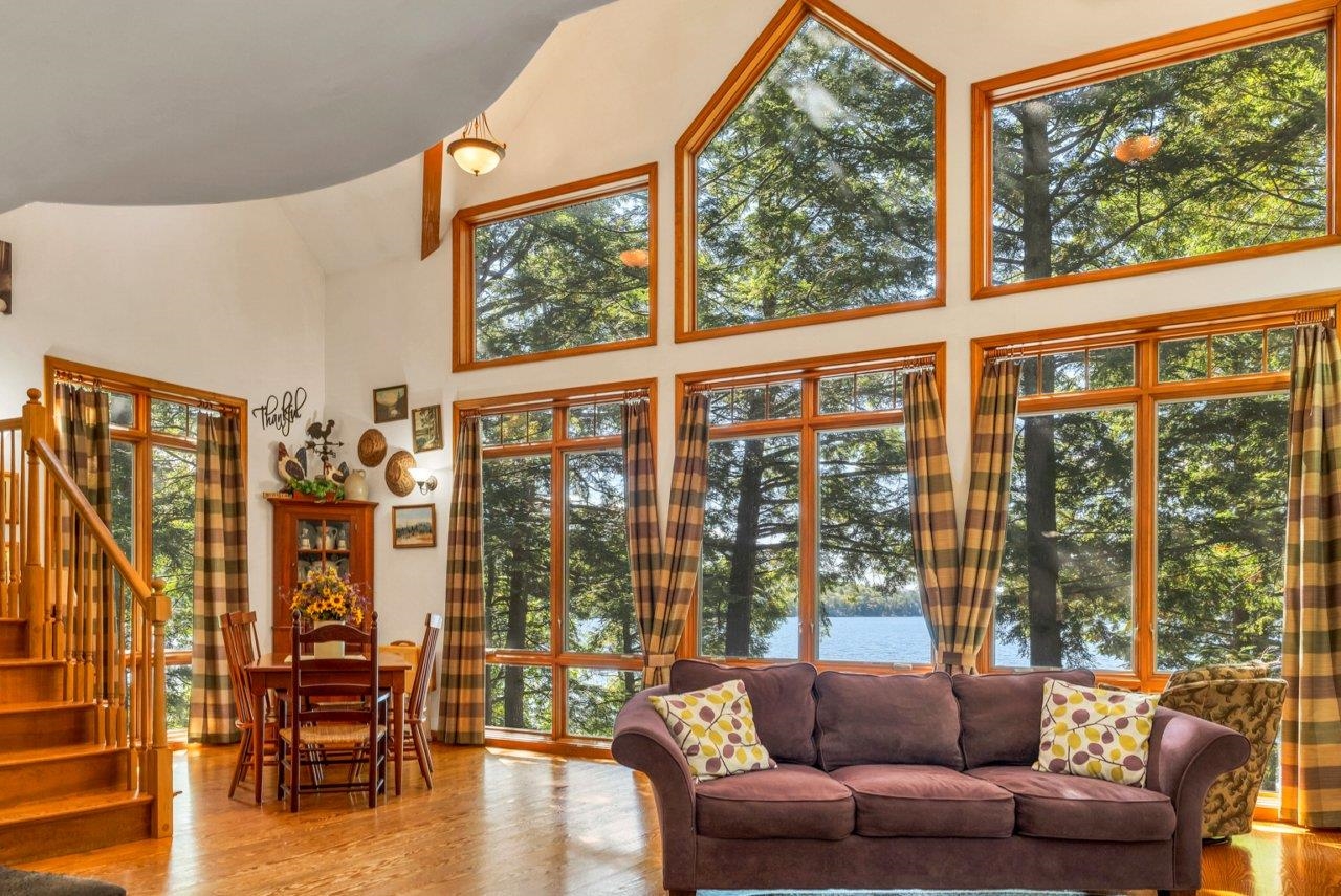 Stunning Lakefront home on Merrymeeting Lake!! Enjoy breathtaking sunset views from this beautiful property situated on a level lot with mature and elegant hardscaping. This home features a spacious deck perfect for entertaining or relaxing by the water. Inside, you'll find large windows that flood the space with natural light and views of the lake from every window: hardwood floors, and an open-concept living area designed for comfort and style. Stay warm by the fireplace on cool nights. The finished walkout basement offers additional living space, perfect for guests, recreation, or a home office. A rare opportunity to own a slice of paradise on one of the region's most desirable lakes.