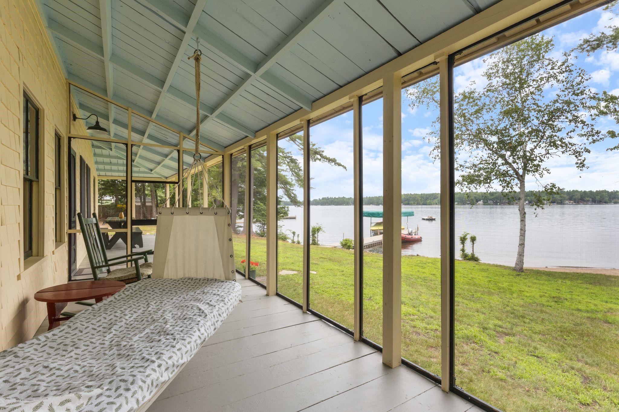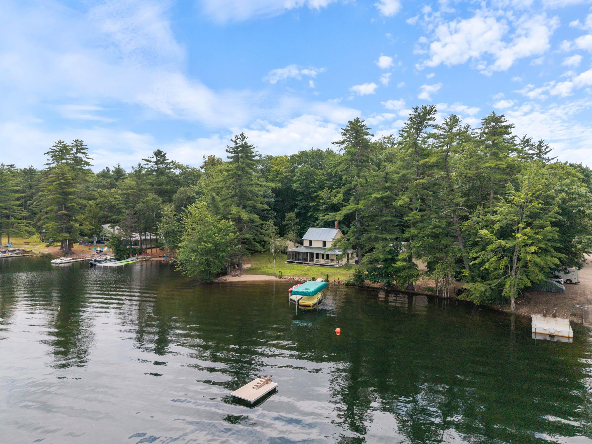 Welcome to Square Pond! Situated on one of the best lots on the lake, this historic property offers 250' of water frontage featuring 2 sandy beaches and covers 1.12 acres. The seasonal camp features rustic appeal, stunning views and front-row seats to unforgettable sunsets. The camp offers a kitchen with modern appliances, living room with a stone fireplace, 4 bedrooms, and wrap around screened porch. In addition to the main camp, there are 2 additional buildings. One is used as a shed and partial bath. The other is a garage currently used for storage. Square Pond is known for its clear water, excellent boating and fishing opportunities- all just 2 hours from Boston and under an hour to Portland and Portsmouth. Whether you are looking to enjoy the original character of the camp or re-imagine the space entirely, the location alone offers endless possibilities. A rare legacy property, perfect for making summer memories for generations to come.
