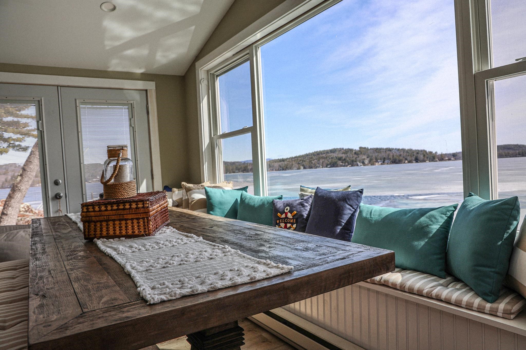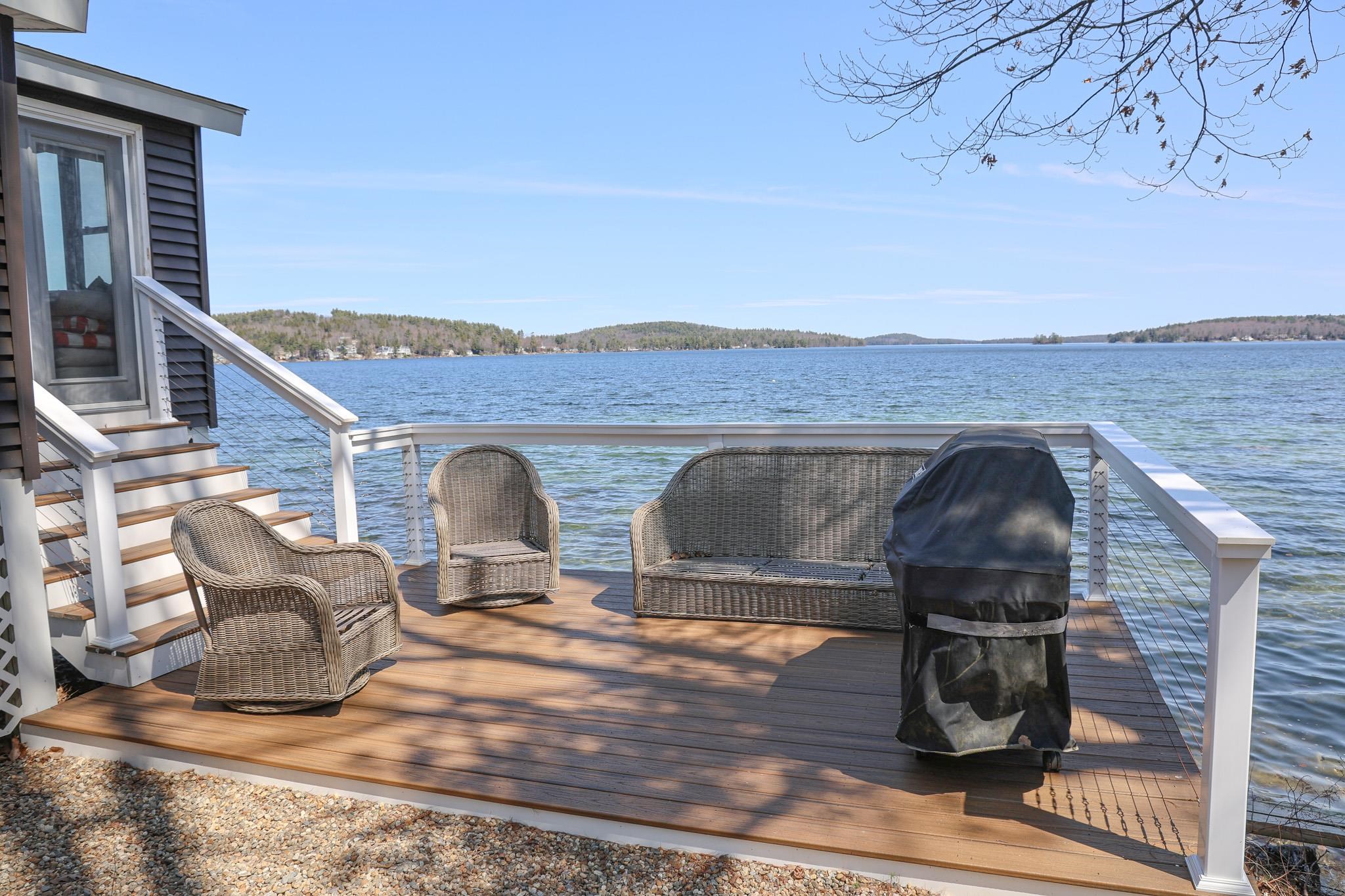 Welcome to Sunrise Point an exquisite Waterfront Estate-414' of Shoreline on Meredith Bay, Lake Winnipesaukee. A rare opportunity to own a legacy waterfront compound with a magnificent views over the lake to the mountains. Set on .62 acres of landscaped land this property offers 2 private sandy beaches and a 40-foot dock. The three-level primary residence is a masterclass in lakeside luxury living, offering 4 spacious bedrooms, primary suite with direct views of the lake, 4 bathrooms & 6 baths. The open concept kitchen and living room have pretty views of the lake and are appointed with all the features any home chef would love. The living room has soaring ceilings open to the second floor and a warm fireplace. A private office with French doors offers a quiet and cozy place to work from home. The full finished walk-up lower level is designed for effortless entertaining, features radiant floor heating, a custom bar and a large lounge area-perfect for hosting guests and watching the games. The bar area has a kitchenette helpful for preparing food and drinks. An expansive deck runs the full width of the home and has direct views of the lake, ideal for a summer dinner or a special party. A charming cottage offers the most spectacular overwater views of Lake Winnipesaukee out its large picture window. The sweet guest cottage offers 2 bedrooms & 1 bath. The kitchen is in a modern/contemporary style with views out to the water. Delayed Showings-OPEN HOUSE 5-24 11:00-2:00 pm