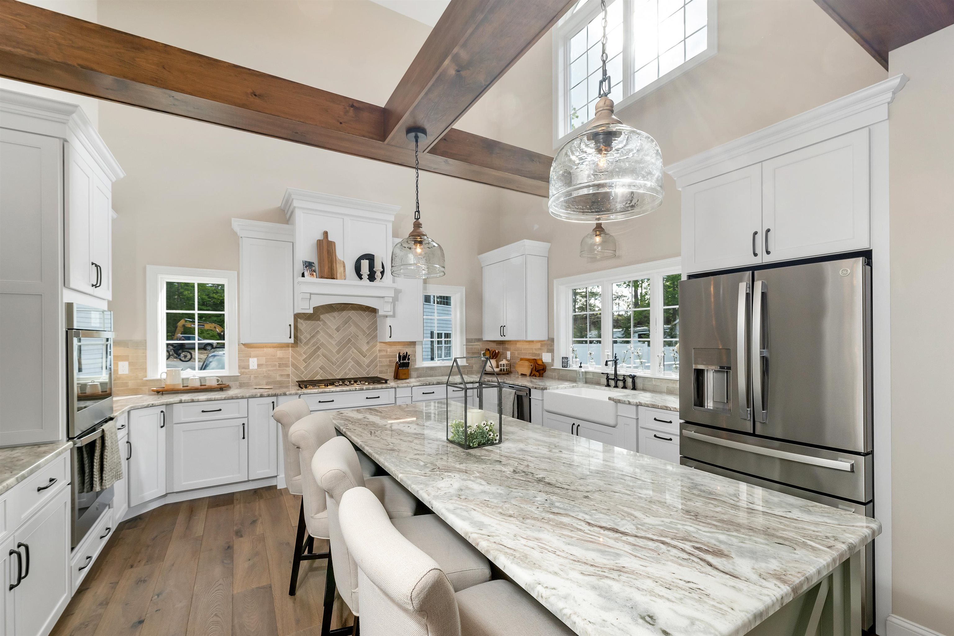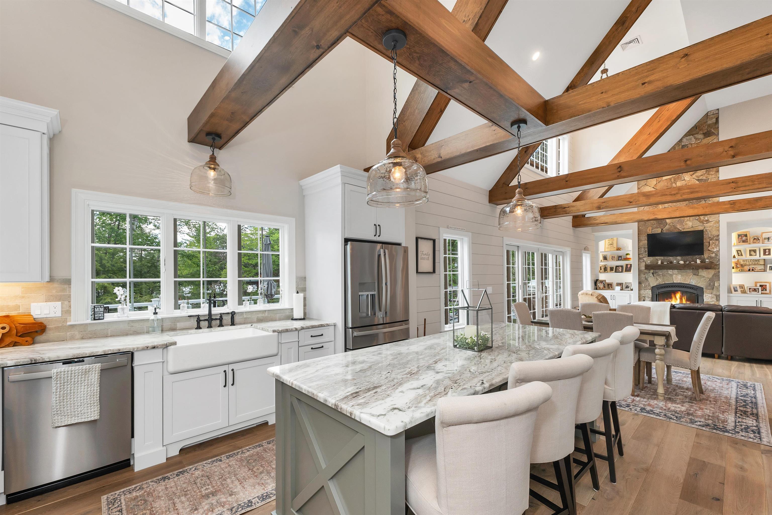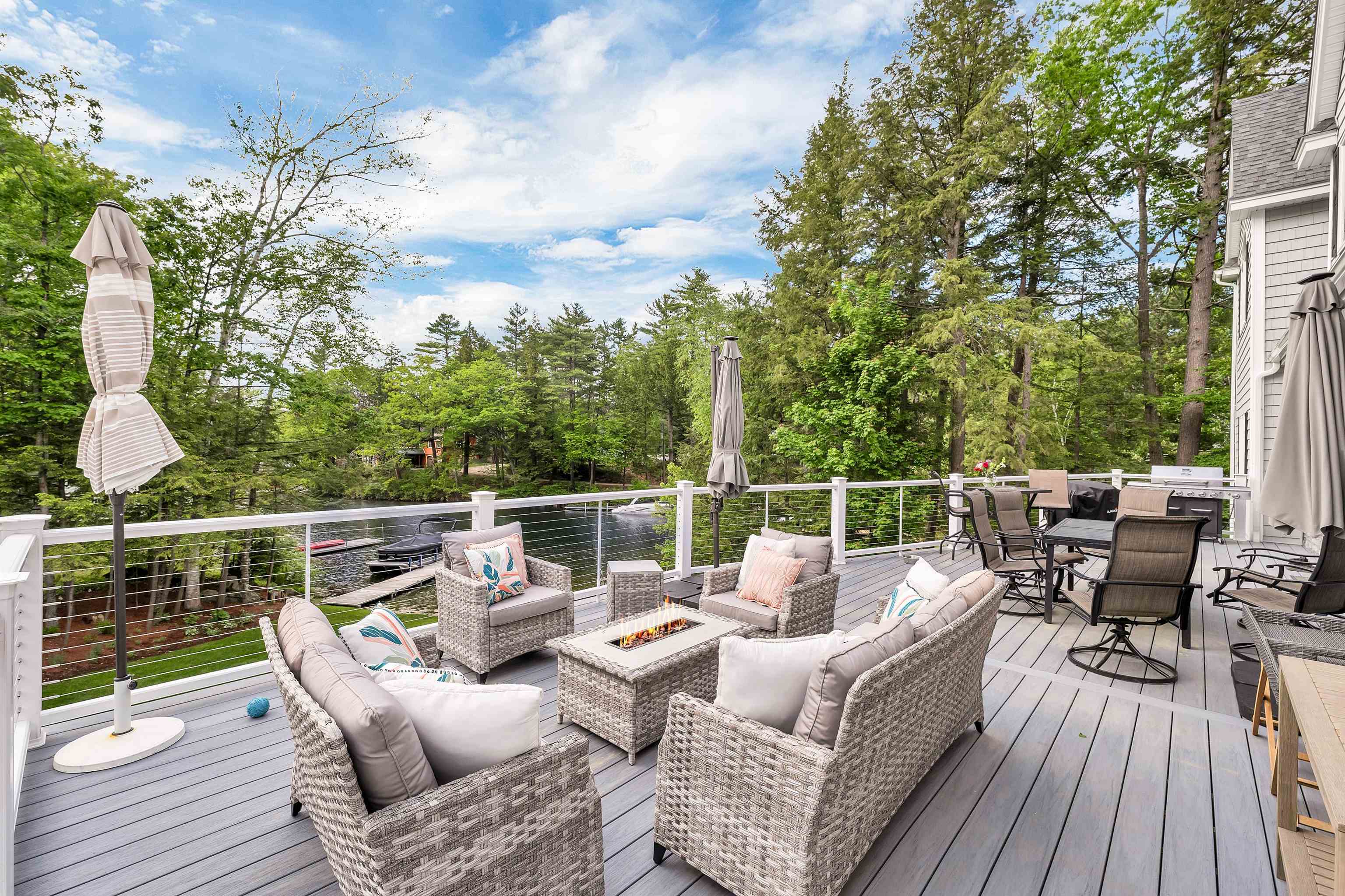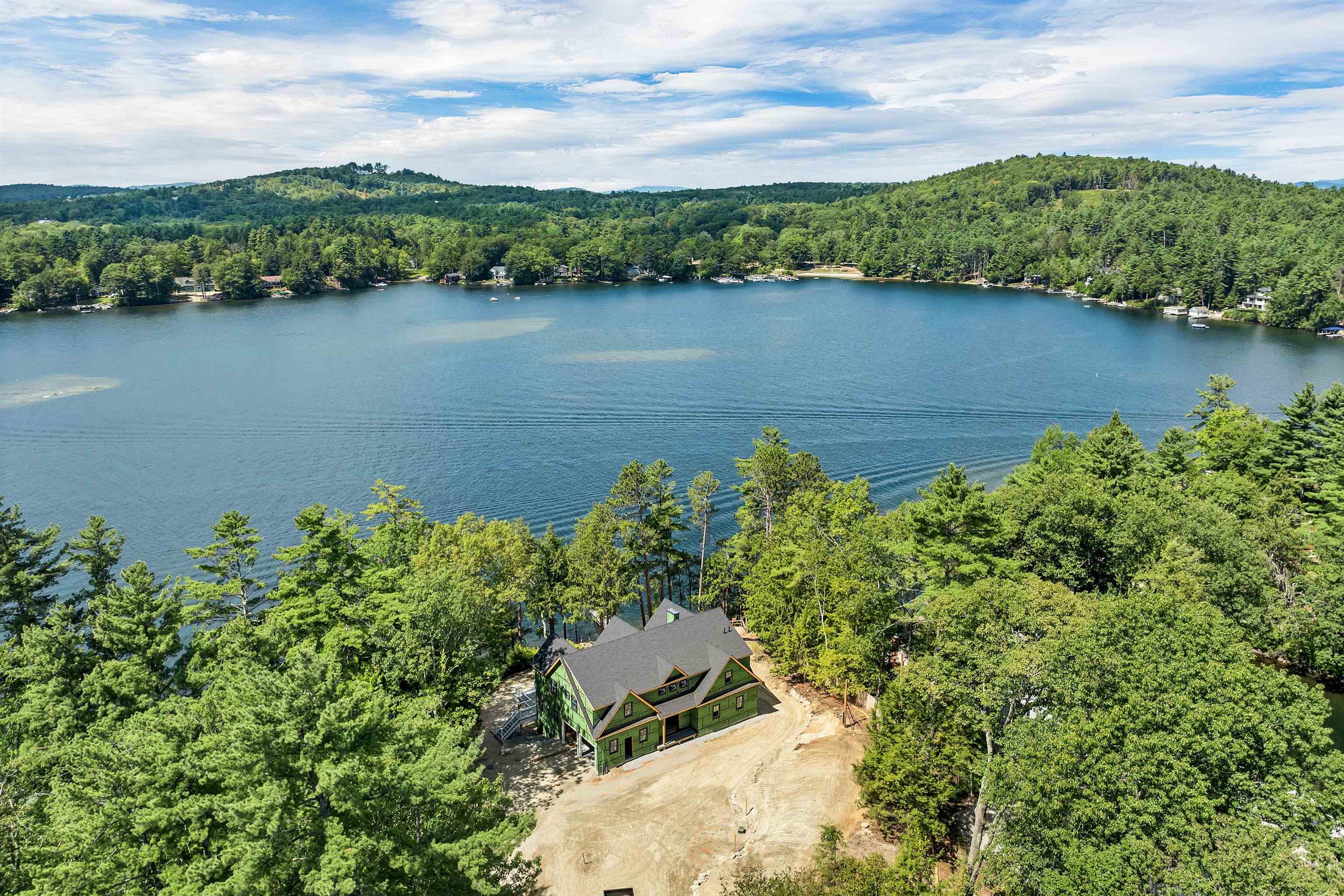 Stunning New Construction, modern farmhouse design with westerly Lake Winnipesaukee views and gorgeous sunsets. Discover the perfect blend of luxury, style, and lakeside living with this under construction, custom-designed lake house in the heart of Meredith, minutes to shopping, restaurants, attractions and more. An oversized lot of 1.36 acre lot with a 6 bedrooms and 6.5 bathrooms, this spacious single-family home is ideal as a year-round residence or luxurious lake retreat. The waterfront has a very large concrete patio and deck at the water's edge and 150' of water frontage, and take advantage of docking for up to 5 boats-a rare opportunity in this sought-after location. The main floor will have a dream kitchen, open to dining and living with a fireplace and soaring ceilings. Take advantage of the view with many windows, sliders and access to a huge deck. The primary suite has a beautiful bath with dual walk-in closets and private laundry. The upper floor has 4 en-suite bedrooms and an office while the walkout lower level will have: a family room with fireplace, wet bar, additional laundry, gym, and golf room or home theater. The lot includes a small existing barn and an optional detached garage with additional living space above-perfect for guests, extended family, or even a private home office or studio. This property offers the best of NH's lake life. Don't miss this unique opportunity to customize your dream home in one of the most desirable areas in the Lakes Region