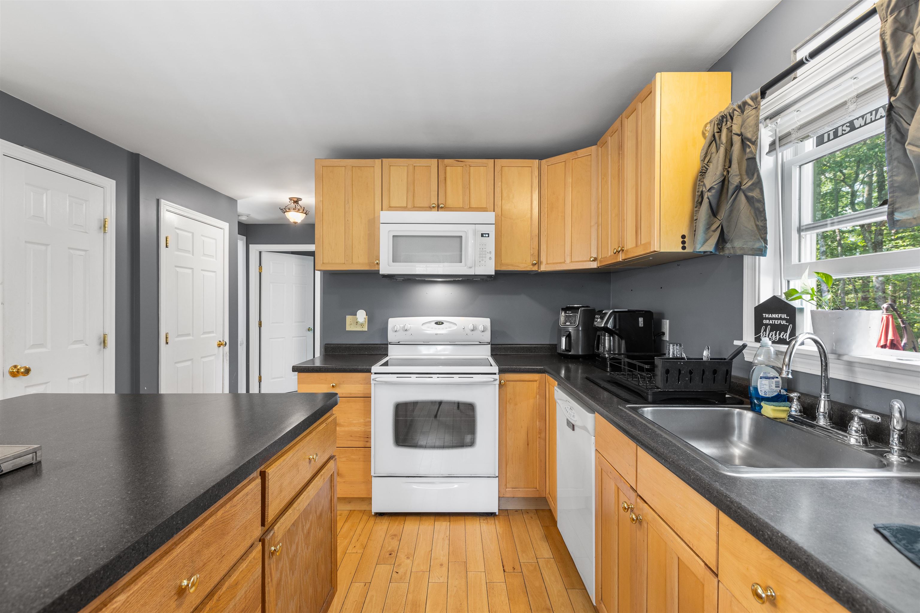 This 2005 cape sits on a 0.68-acre lot in low-tax Wakefield with seasonal views of Pine River Pond. The main level features a kitchen with a large island and ample storage, a dining room with natural light, a full bathroom equipped with a soaking tub, a living room, and a bedroom that can also serve as an office. Upstairs are two large bedrooms with double closets, plus another full bathroom. The finished basement offers additional living space, a laundry area, and a full bath. The home comes equipped with a standby generator and mini-split heating and cooling units in the living room and upstairs bedrooms. From this location, you're close to Pine River Pond, Stump Pond, Balch Pond, Belleau Lake, and Great East Lake. Hiking, skiing, and outdoor recreation in the White Mountains are within an hour's drive, while nearby towns like North Conway, Wolfeboro, and Rochester provide shopping, dining, and work opportunities. This property offers a practical year-round home base with four-season recreation all around.