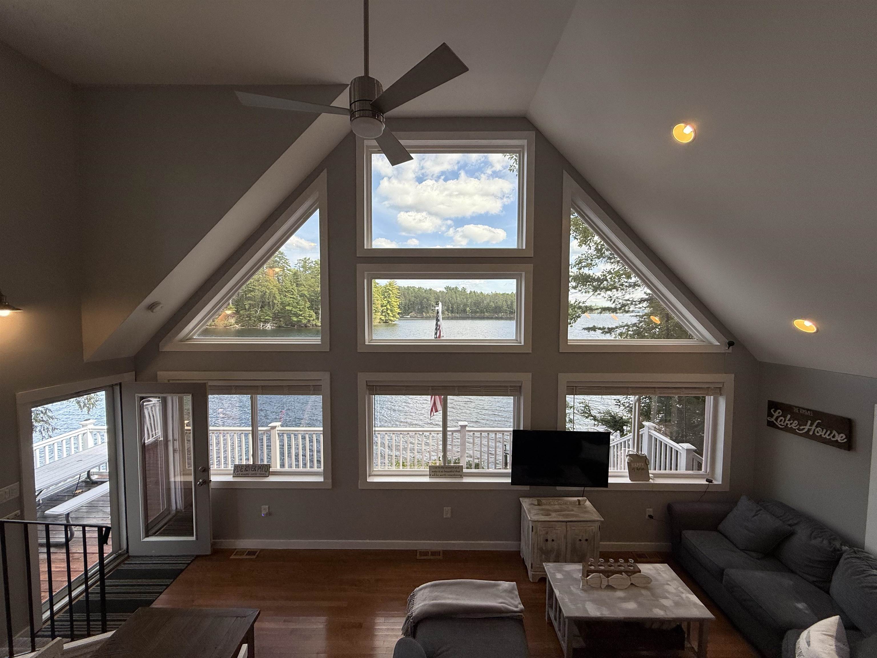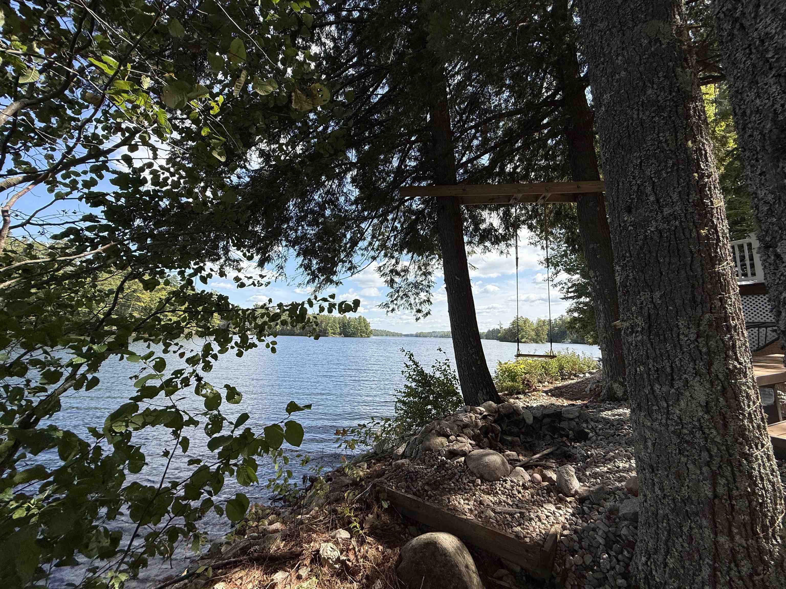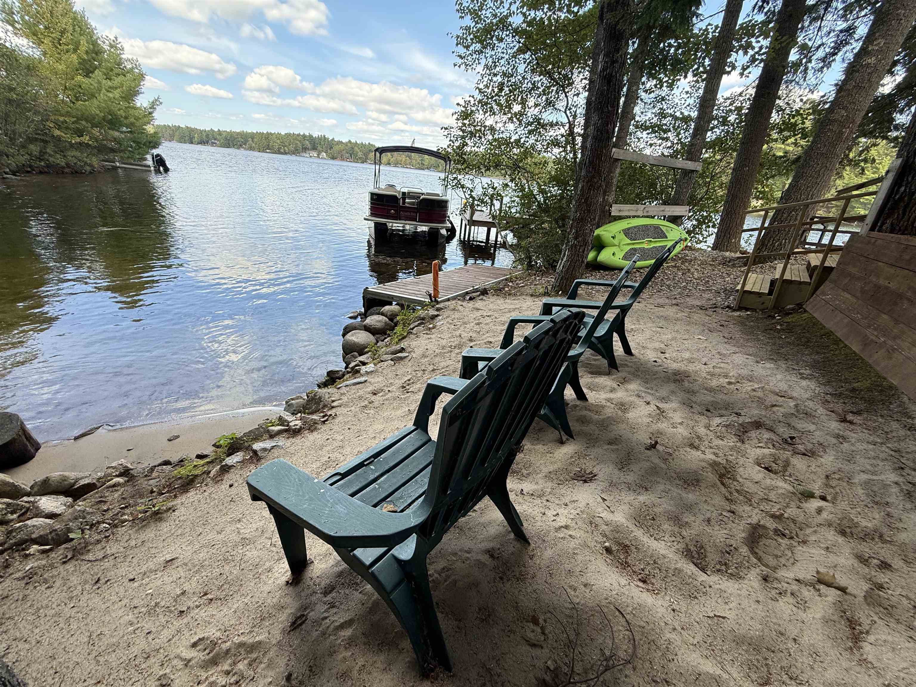 Discover your perfect lakeside escape with this rare waterfront home on the highly sought-after Pine River Pond. With 105 feet of pristine shoreline, this property offers breathtaking, expansive views and endless opportunities for relaxation and recreation. Inside, you'll find a warm and inviting two-bedroom layout highlighted by floor-to-ceiling windows with tinted privacy glass, allowing you to take in stunning water views while maintaining comfort and seclusion. The open floor plan gives way to plenty of entertaining, while a loft area provides plenty of additional space, perfect for extra guests, a home office, or a cozy reading nook. Stepping outside, you experience true lakefront living. Three docks provide ample space for boats, kayaks, or simply soaking up the sun. A private beachfront area invites swimming and sandcastle fun. A classic tree swing adds a touch of nostalgia, while the firepit sets the stage for unforgettable evenings under the stars. The wrap-around deck offers the ideal spot for entertaining, dining al fresco, or simply relaxing while overlooking the water. When you are ready to head back in, no need to worry about sandy feet. The outdoor shower is there, ready and waiting. Whether you're seeking a year-round residence or a seasonal getaway, this Pine River Pond gem delivers the perfect blend of natural beauty, privacy, and waterfront lifestyle.