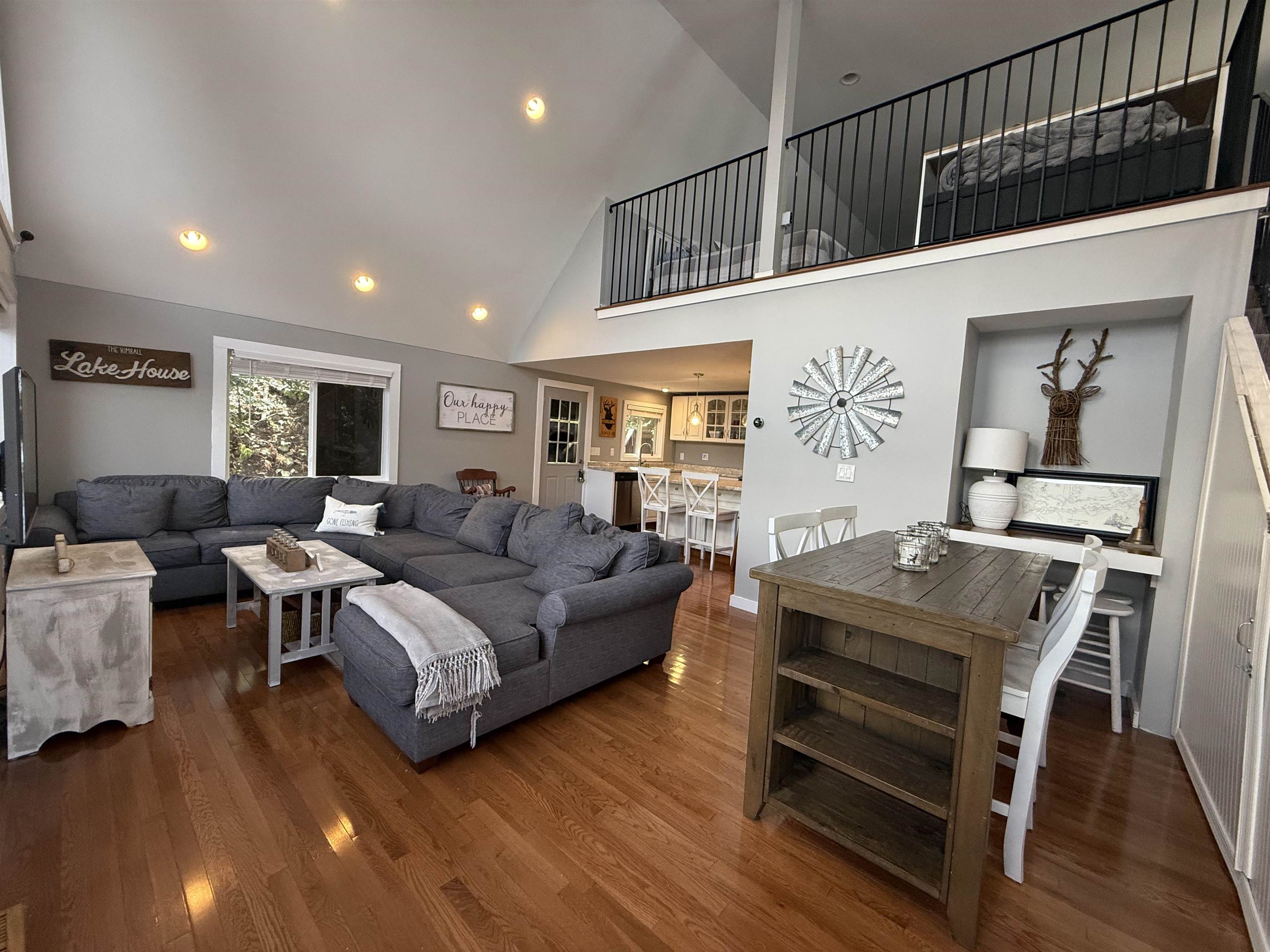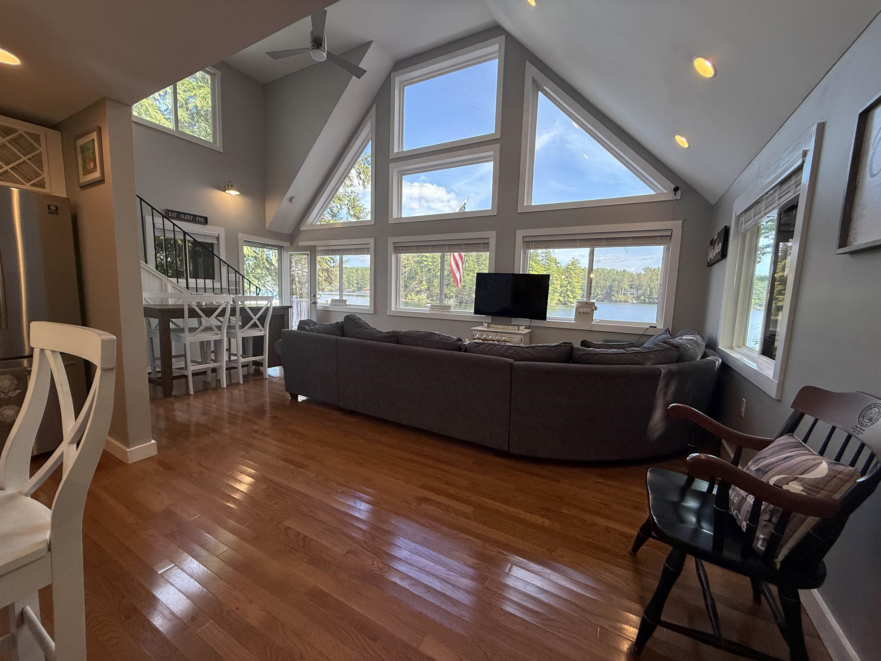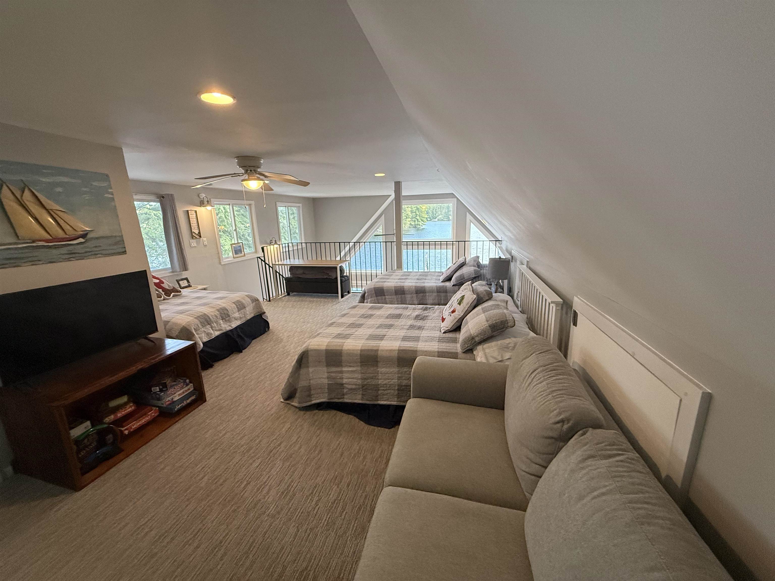 Discover your perfect lakeside escape with this rare waterfront home on the highly sought-after Pine River Pond. With 105 feet of pristine shoreline, this property offers breathtaking, expansive views and endless opportunities for relaxation and recreation. Inside, you'll find a warm and inviting two-bedroom layout highlighted by floor-to-ceiling windows with tinted privacy glass, allowing you to take in stunning water views while maintaining comfort and seclusion. The open floor plan gives way to plenty of entertaining, while a loft area provides plenty of additional space, perfect for extra guests, a home office, or a cozy reading nook. Stepping outside, you experience true lakefront living. Three docks provide ample space for boats, kayaks, or simply soaking up the sun. A private beachfront area invites swimming and sandcastle fun. A classic tree swing adds a touch of nostalgia, while the firepit sets the stage for unforgettable evenings under the stars. The wrap-around deck offers the ideal spot for entertaining, dining al fresco, or simply relaxing while overlooking the water. When you are ready to head back in, no need to worry about sandy feet. The outdoor shower is there, ready and waiting. Whether you're seeking a year-round residence or a seasonal getaway, this Pine River Pond gem delivers the perfect blend of natural beauty, privacy, and waterfront lifestyle.
