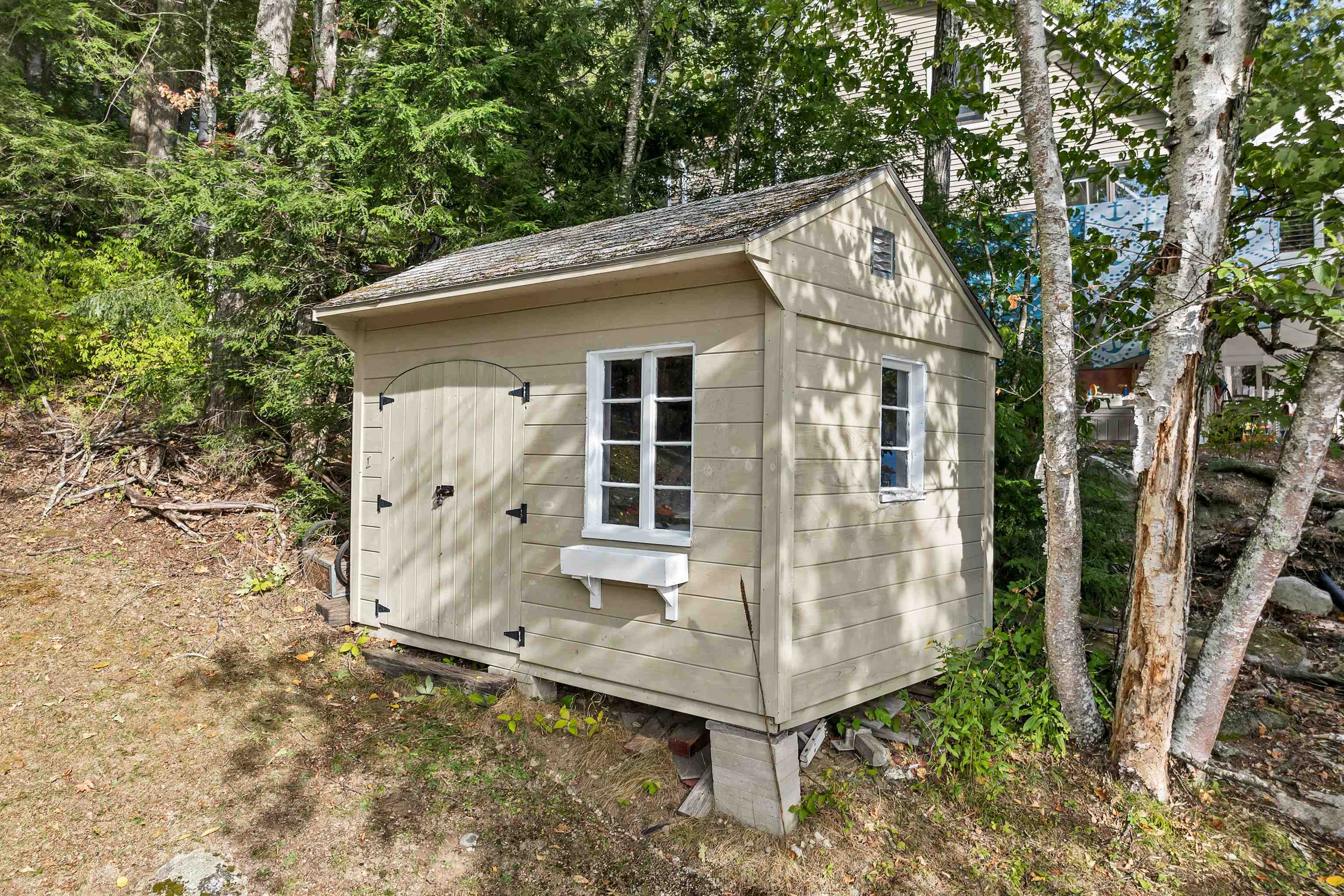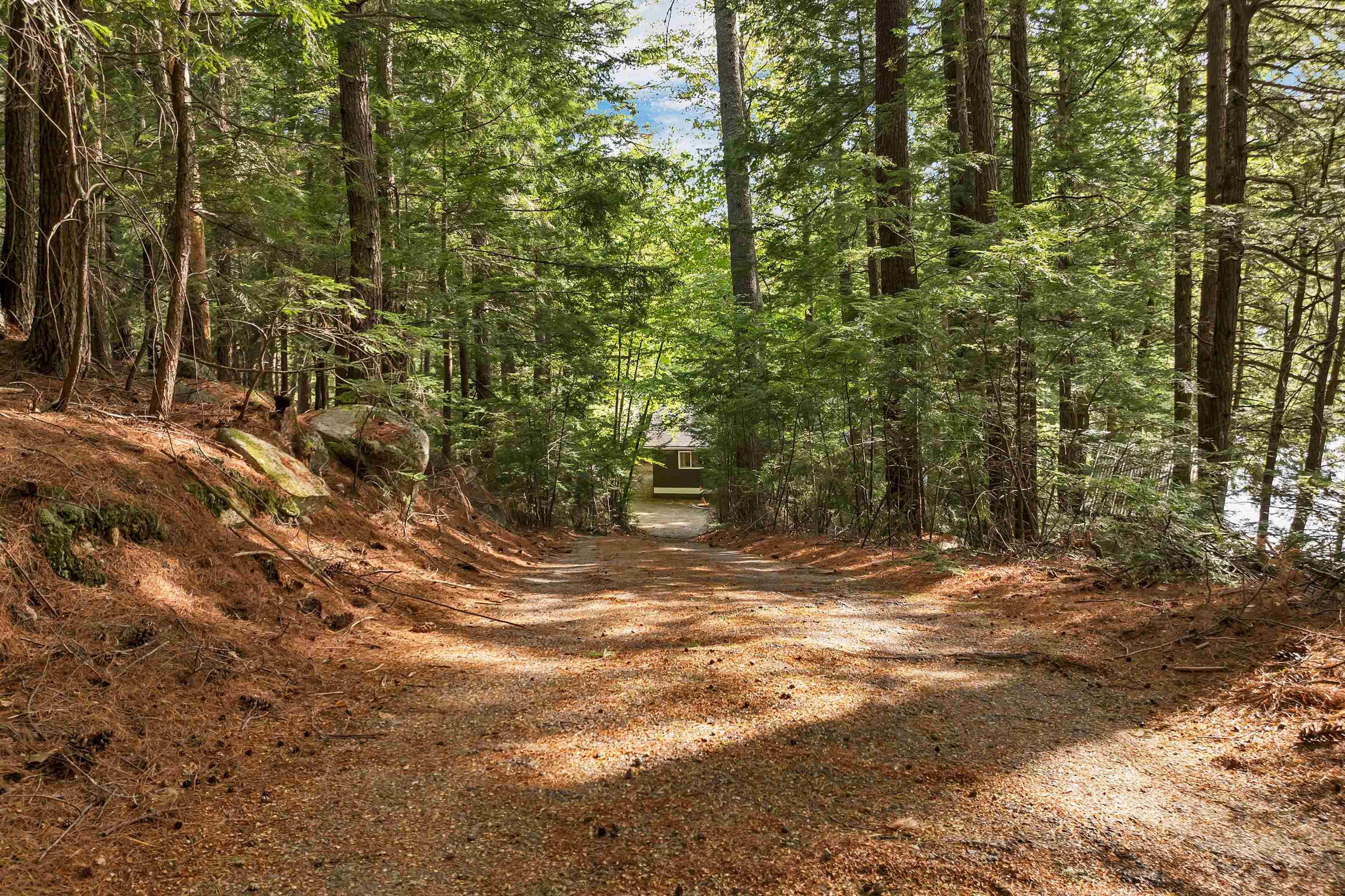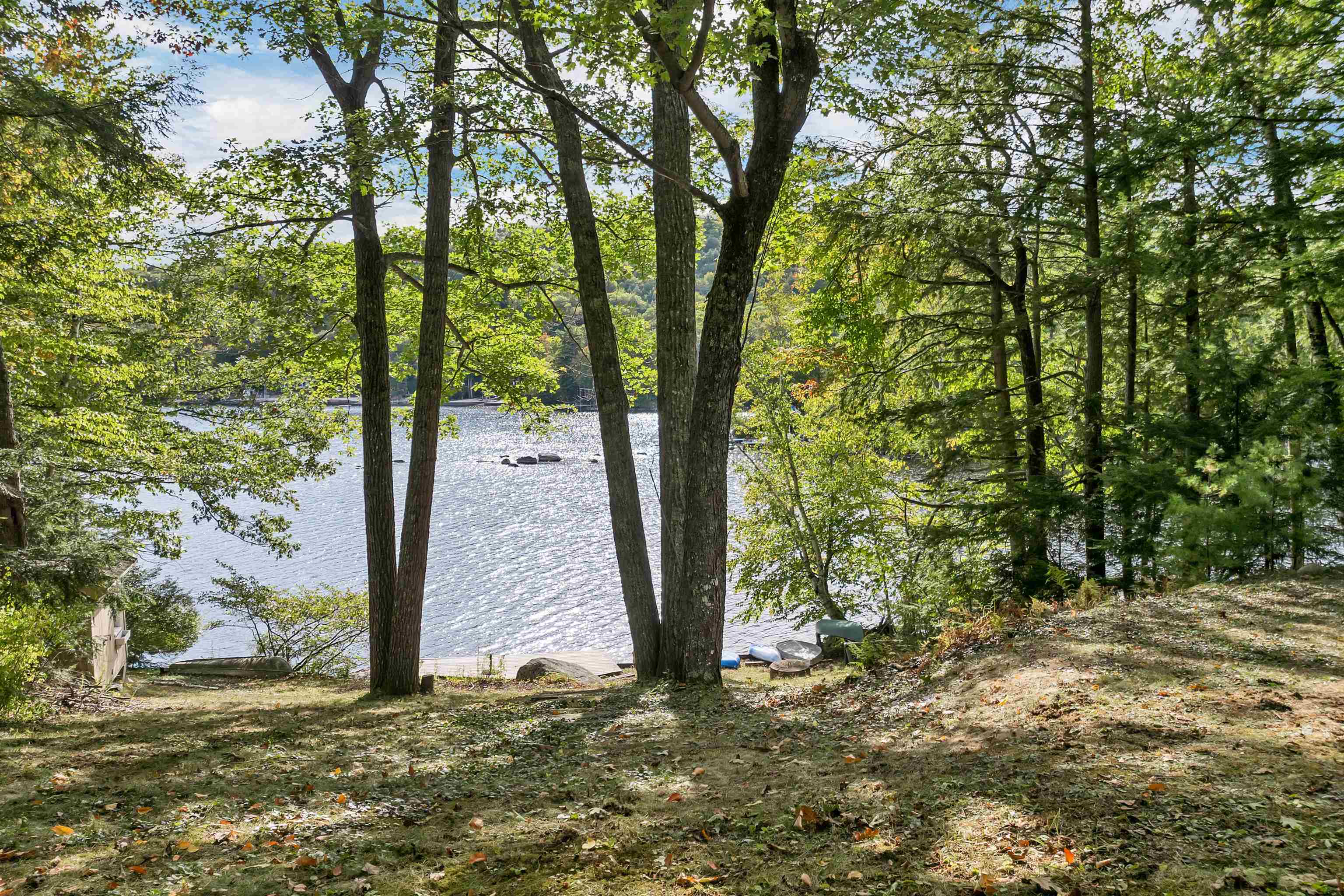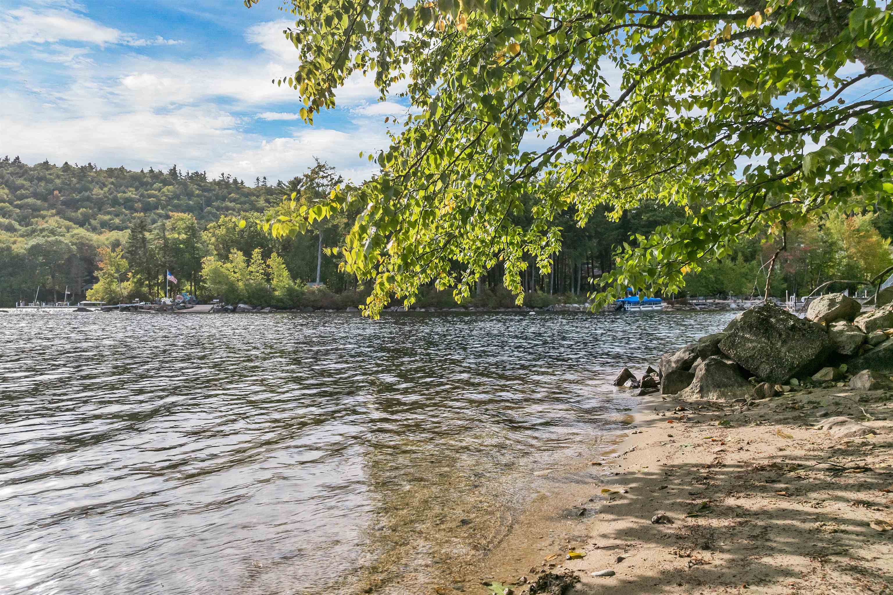 Contemporary Merrymeeting Lake Ranch on a sloping lot with 102' of southwest exposure on Pleasant Cove. This 2-bedroom Ranch has many memories for the Sellers. There is a hardwood oak floor in the open concept kitchen, dining area, and living room. A brick wood-burning fireplace adds warmth in the living room. The 2-level sunroom addition is accessed from the living room, and features a bonus room in the basement level. When you turn into the driveway there is an expanded parking area; the Sellers made occasional visits in the wintertime, by parking off North Shore Road and walking down to their Cottage. There is currently a large deck attached in front with access from either the dining area or the sunroom. Enjoy afternoon sun and lake views from the deck. You will find a wooden deck at the shorefront which is ideal for launching your kayaks and paddleboards. The gradual sandy shoreline on the sunny side of the cove is ideal for swimming. A seasonal dock could be situated close to the left corner of the shoreline where the water is deeper. Store your boating supplies in the lakeside shed. There are many newer homes in the Pleasant Cove neighborhood. This location and home may fill the needs of your family. Sign on property!