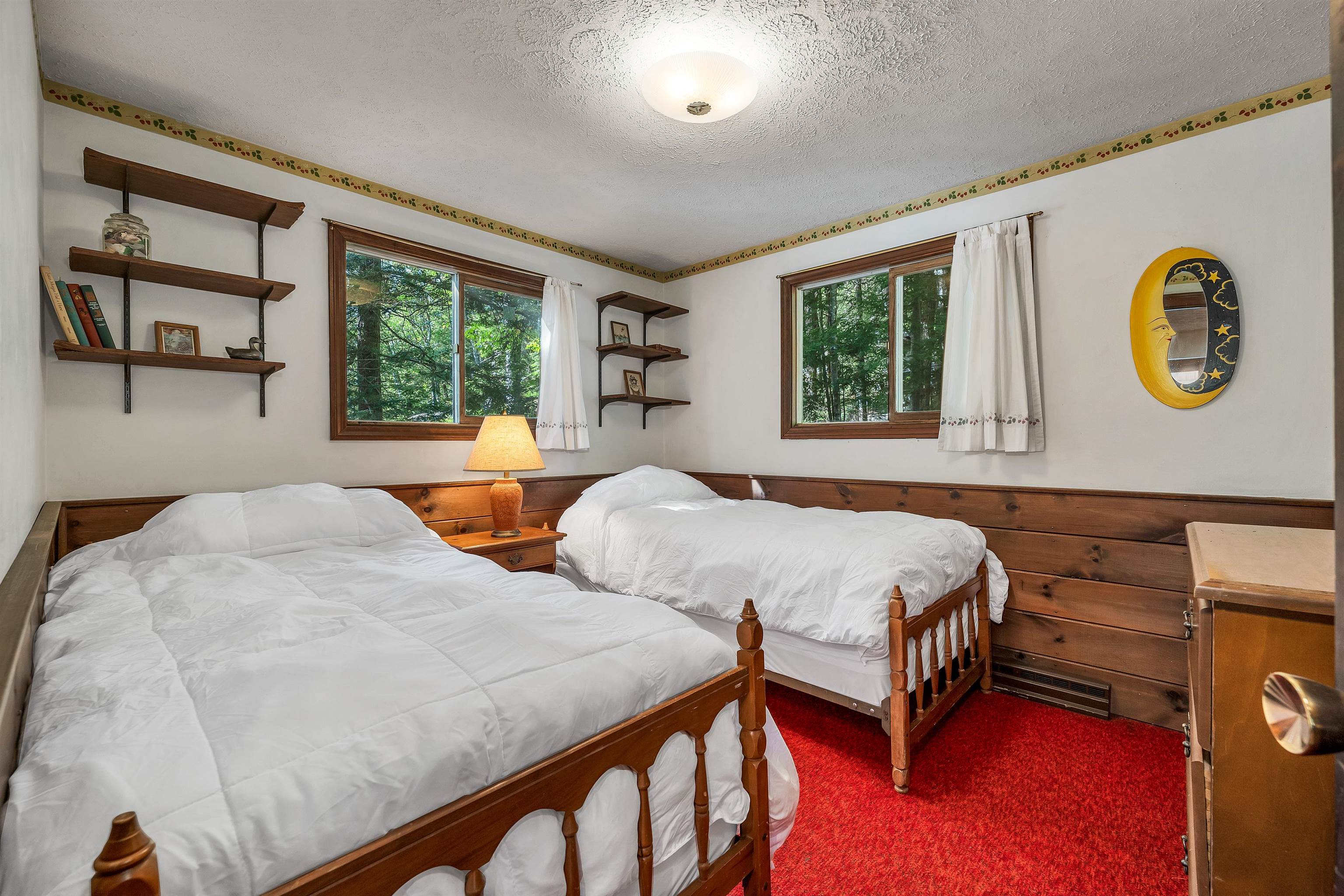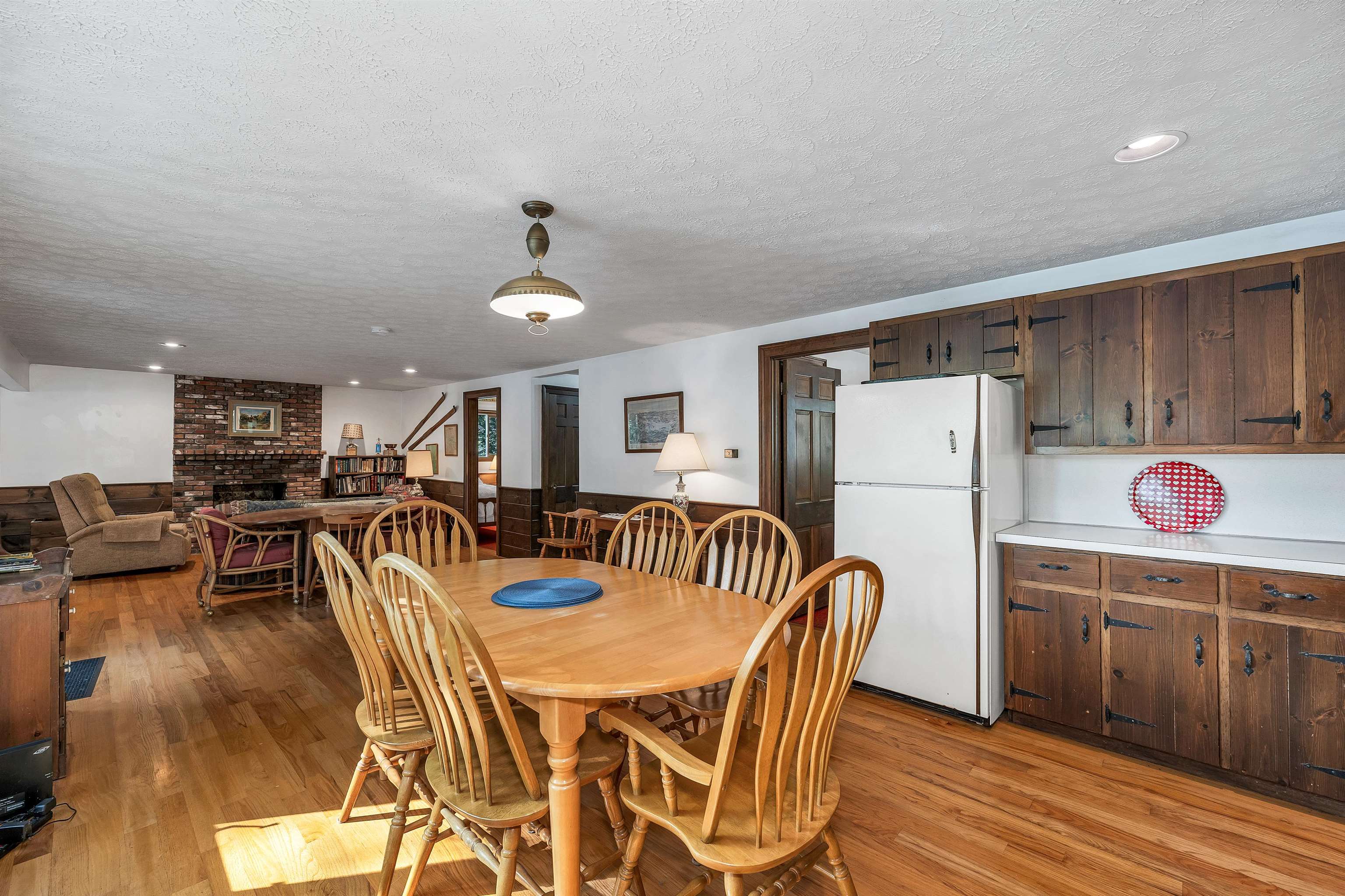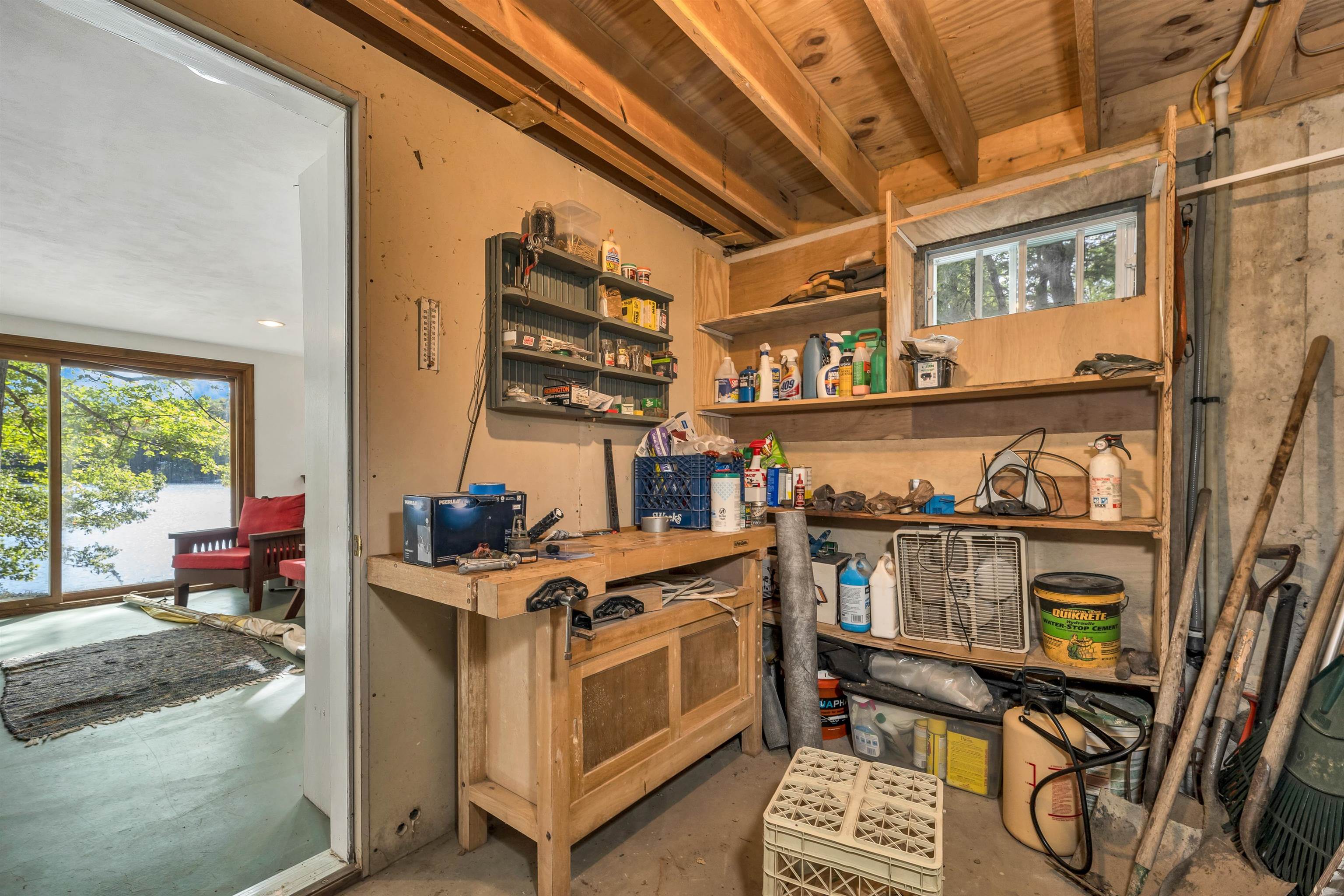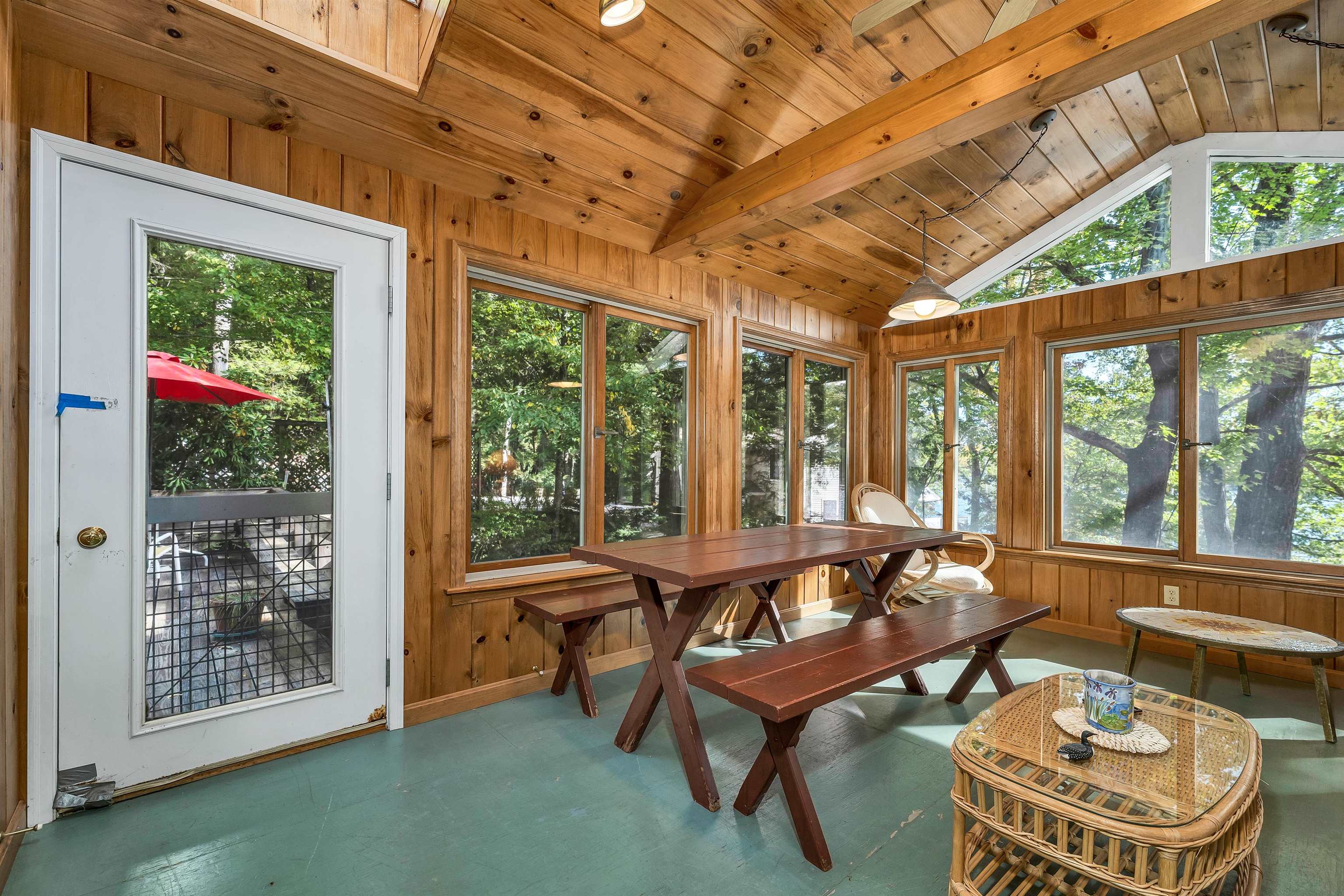 Contemporary Merrymeeting Lake Ranch on a sloping lot with 102' of southwest exposure on Pleasant Cove. This 2-bedroom Ranch has many memories for the Sellers. There is a hardwood oak floor in the open concept kitchen, dining area, and living room. A brick wood-burning fireplace adds warmth in the living room. The 2-level sunroom addition is accessed from the living room, and features a bonus room in the basement level. When you turn into the driveway there is an expanded parking area; the Sellers made occasional visits in the wintertime, by parking off North Shore Road and walking down to their Cottage. There is currently a large deck attached in front with access from either the dining area or the sunroom. Enjoy afternoon sun and lake views from the deck. You will find a wooden deck at the shorefront which is ideal for launching your kayaks and paddleboards. The gradual sandy shoreline on the sunny side of the cove is ideal for swimming. A seasonal dock could be situated close to the left corner of the shoreline where the water is deeper. Store your boating supplies in the lakeside shed. There are many newer homes in the Pleasant Cove neighborhood. This location and home may fill the needs of your family. Sign on property!