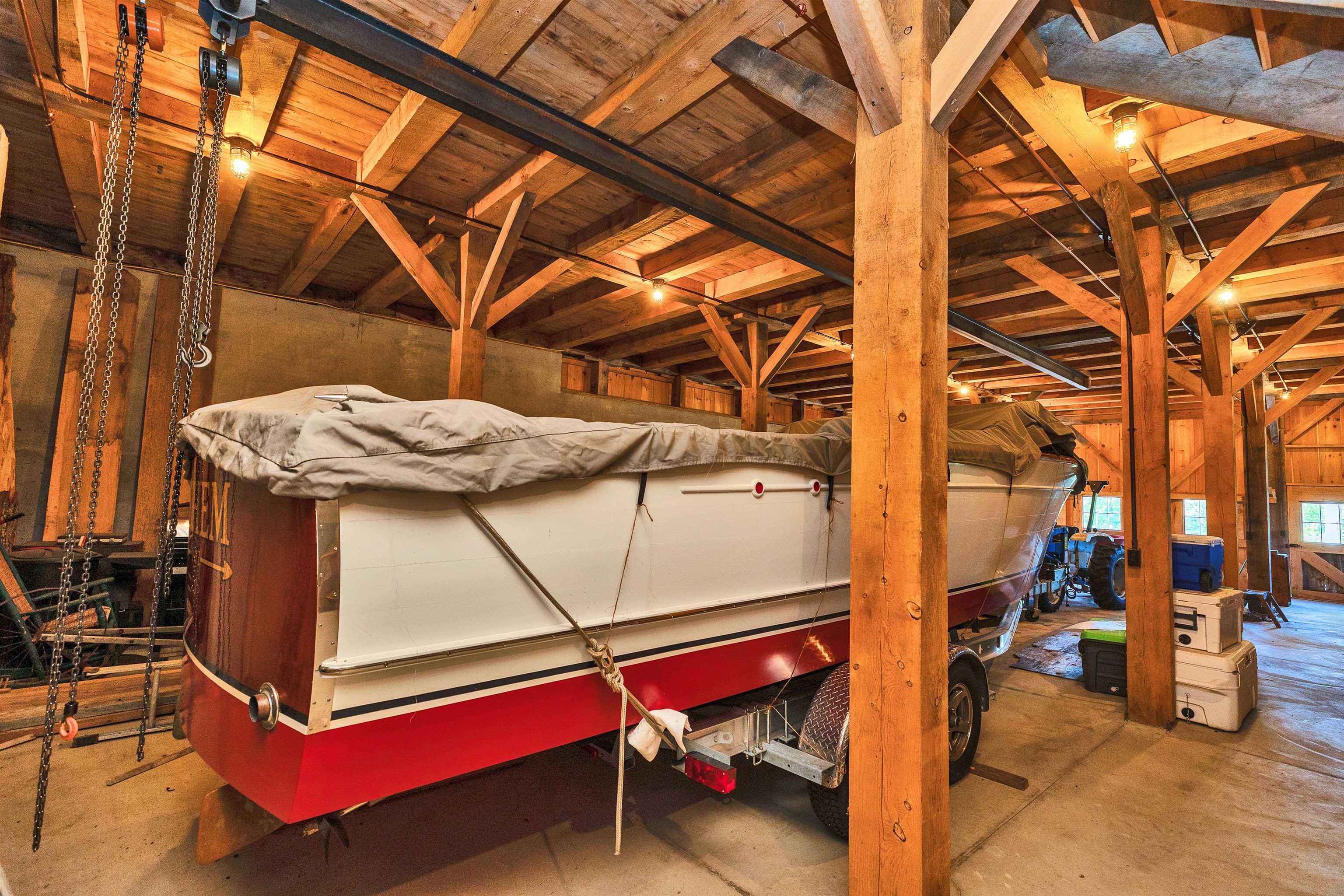 Secure...in its elevated incomparable setting of 107 +/- investment quality acres with regional views, over 40 acres of open land and frontage on crystal clear Lake Winnipesaukee. Pinnacle Hill Farm offers a generational opportunity to own a country estate of enduring value, singular appeal and easy accessibility to watersports, hiking and big mountain skiing. The residence, c.2016, was custom crafted by iconic local builder Henry Page from a combination of three period Post and Beam frames and includes lovely woodworking, stonework and architectural detailing honoring classic design throughout. The home, 5 bedroom, 4 baths and two half baths, with two brick fireplace hearths in over 6,000 square feet of finished space, features central HVAC, efficient radiant oil heating, custom chef's kitchen, two large bedroom suites with walk-in closets and private spa baths, central automatic generator, two private offices and wonderful seasonal Post and Beam great room over attached oversized garage. The detached three level Post and Beam barn includes a large lower level with boat lift and running water.The property has over a mile of interior roads with a wooded lane which leads to the waterfront parcel on Pinnacle Park Road which includes parking area, private permanent dock and boat mooring on the serene shores of Meredith Bay. Land to be sold in low tax Current Use status, with no conservation easements. Proof of funds required for showings, by appointment only. A rare find indeed!