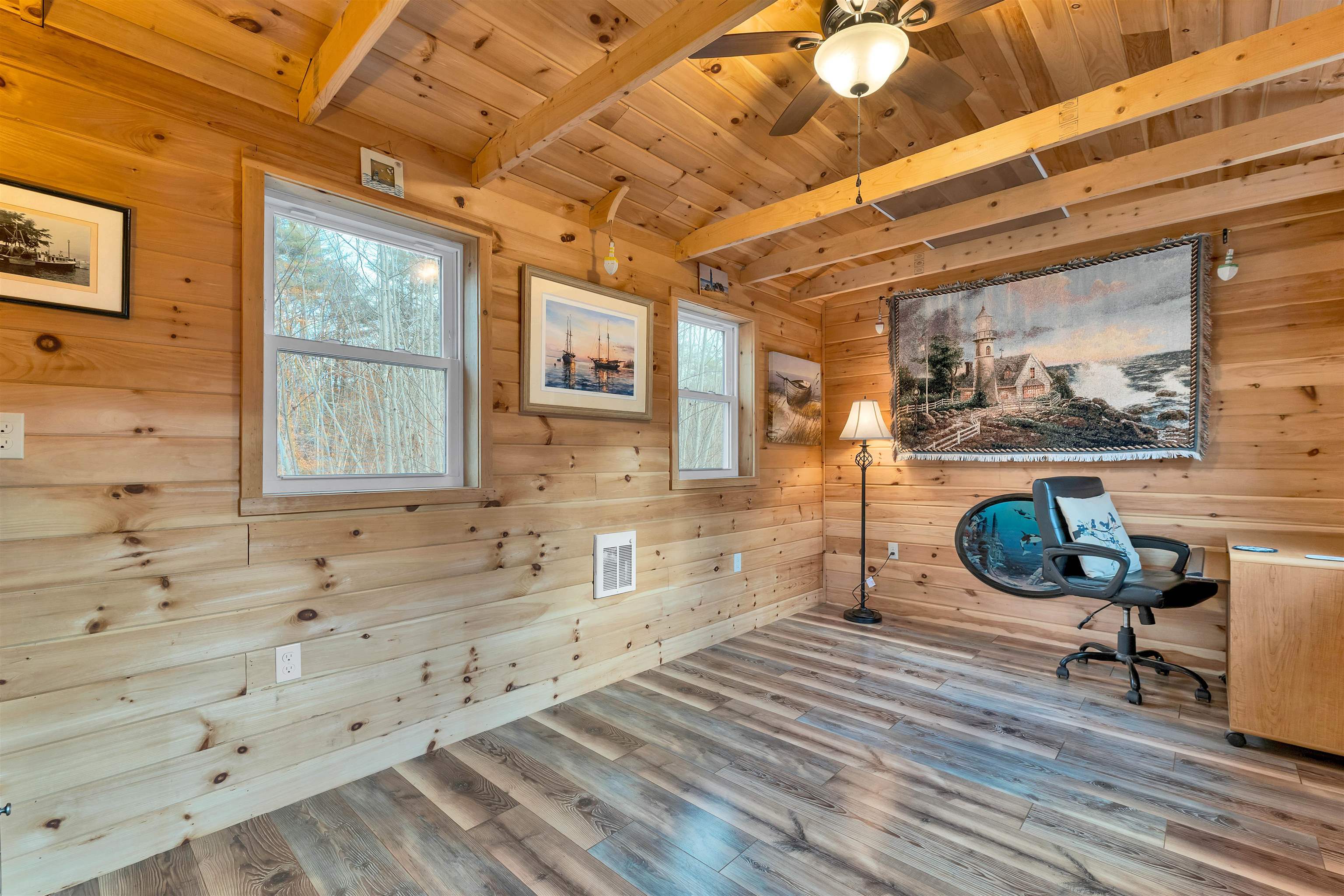 Welcome to 156 Elm Street in Ossipee, New Hampshire - a charming log home set on over two private acres with gardens, fruit trees, and peaceful walking paths. This inviting property features 2 bedrooms, 1.5 bathrooms, and a spacious unfinished basement ideal for storage or future expansion, offering excellent potential for first-time buyers looking to build equity. A standout highlight is the 16x12 fully finished outbuilding with electricity and heat, perfect for a she-shed, detached home office, studio, or hobby space. The natural surroundings provide a quiet retreat, and the property is just moments from Stimson Forest conservation land, ideal for hiking, exploring, and enjoying year-round outdoor activities. You'll also appreciate the close proximity to Duncan Lake, offering convenient water access for kayaking, fishing, and peaceful days by the shoreline. This location is perfect for a starter home, hunting camp, or snowmobile getaway being close to snowmobile trails, and recreation in every direction. Enjoy skiing at five ski resorts within an hour, snowmobiling, and boating on nearby Ossipee Lake, all while being in the Governor Wentworth School District. You're just 15 minutes to Lake Winnipesaukee, 30 minutes to Mount Washington Valley, within easy commuting distance of the NH Seacoast, and under two hours to Boston. Don't miss this opportunity to own an affordable log home with privacy, land, and exceptional access to nature. Schedule your private showing today!
