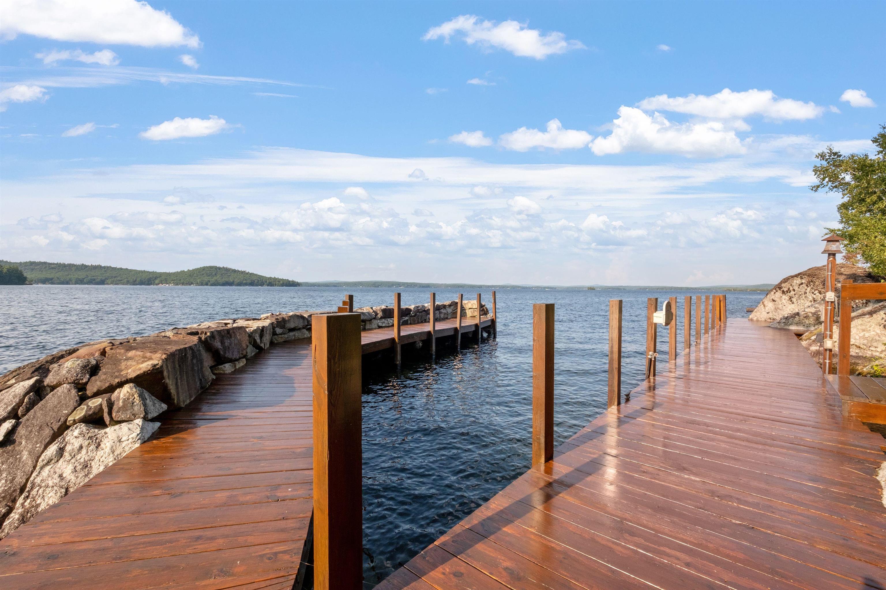 Welcome to Timber Ridge providing you the opportunity to live on Lake Winnipesaukee in this spectacular Adirondack style contemporary lake house. This home is well appointed with exceptional materials throughout and a nice floor plan. Open living spaces and a great flow from the custom kitchen to the great room and a floor to ceiling stone fireplace. Stunning views from every room. The sunroom is a great place to read a book and enjoy the fireplace. There are gleaming cherry floors in the living areas. The first floor master suite has a gas fireplace, his and hers closets and a bath with soaking tub and walk-in shower. The second level has a beautiful private suite above the garage perfect for guests and 2 other bedrooms and loft areas. The lower level has a large family/game room, hot tub, wet bar area and theater room. There is a walk out to a paver patio and granite steps down to your large deep water hardwood dock for several boats and a sandy bottom for swimming. This is a fantastic waterfront neighborhood close to shopping, attractions and other Lakes Region amenities like the Bank NH Pavilion, Gunstock for skiing and Mount Major for hiking.