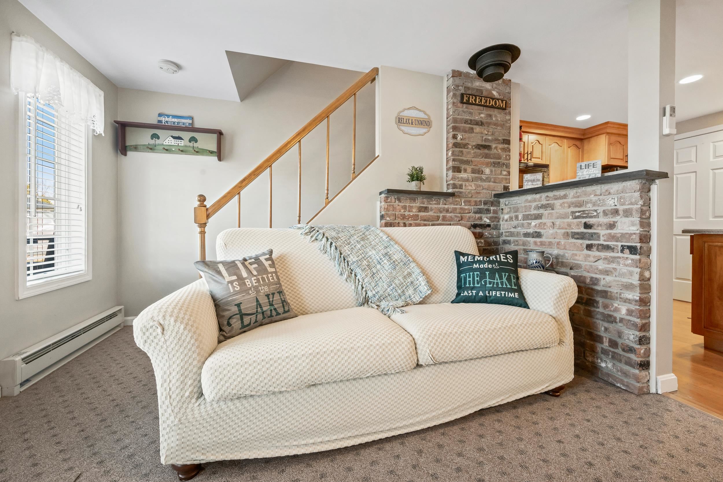 OSSIPEE LAKE - BERRY BAY WATERFRONT CONDO IN LOW TAX FREEDOM! No obstructed views from unit and private patio! Enjoy this affordable, cozy, very well cared for, 4-season condominium community with direct access to the lake which is extremely rare at this price point! Experience amazing sunsets from your own private gazebo area and lovely landscaped grounds. Sold furnished and updated to include 3-mini-splits for heating & cooling. 2-level, open concept living room, dining and kitchen area with counter bar, laundry/utility room, pantry closet and 1/2 bath. Upstairs has full bathroom, large primary bedroom with double doors that open to a private balcony and view of the lake. Second bedroom w/bunks have double sliders which open to a back deck and second exit/entrance that leads to parking lot. Enjoy one of the best placed units in complex with nothing blocking views or access to lake. Shared sandy beach and lake frontage, day dock, boat mooring (often available after ownership) with a basketball & pickleball court and kayak racks. Also close to King Pine ski area, snowmobile and hiking trails and North Conway Village. Don't miss your chance to be part of this amazing lake community!